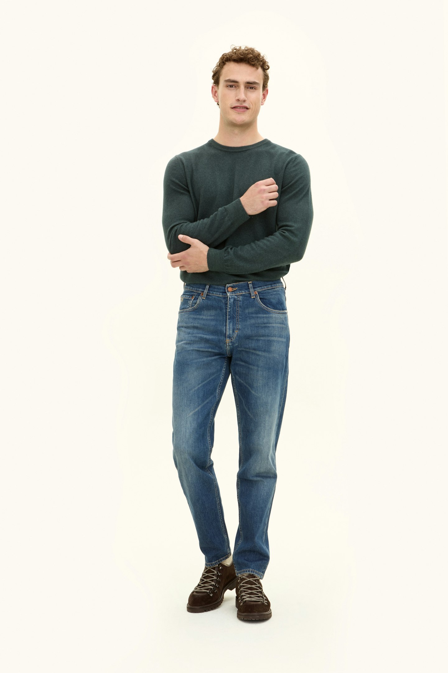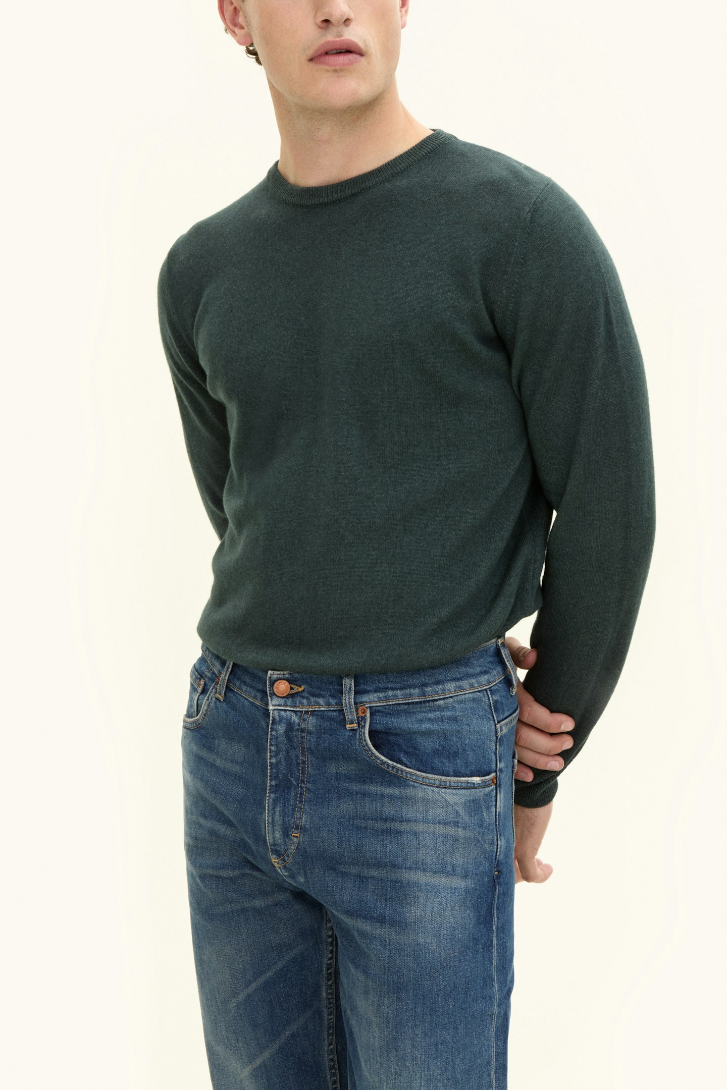 Avrundet genser i kasjmir og silke. Kasjmirfibrene sammen med silke gir plagget en luksuriøs myk og litt blank overflate. Dobbelt halsribb får genseren til å føle seg ekstra komfortabel mot nakken. Strikket i 12gg, perfekt å bruke lag på lag over t-skjorte, skjorte eller under jakke.