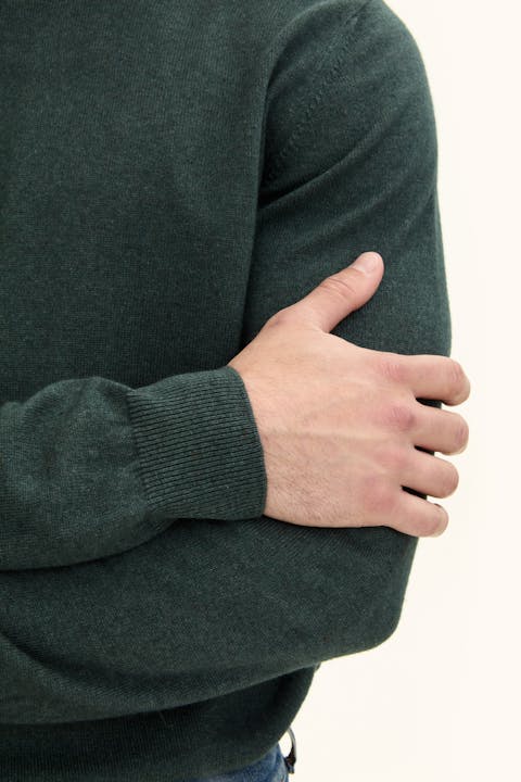 Avrundet genser i kasjmir og silke. Kasjmirfibrene sammen med silke gir plagget en luksuriøs myk og litt blank overflate. Dobbelt halsribb får genseren til å føle seg ekstra komfortabel mot nakken. Strikket i 12gg, perfekt å bruke lag på lag over t-skjorte, skjorte eller under jakke.