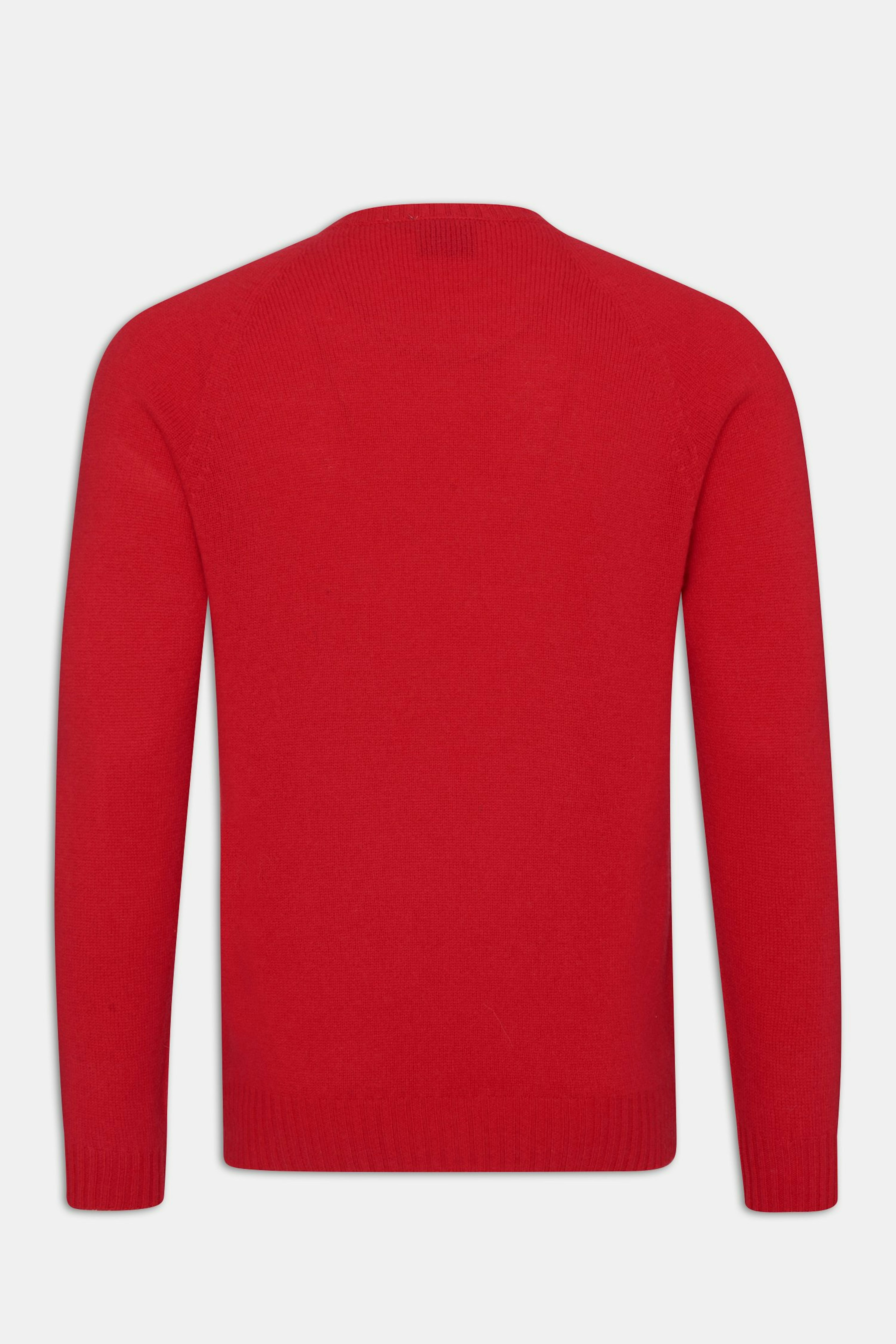 Knitted wool raglan roundneck with rib knitted neck and cuffs.