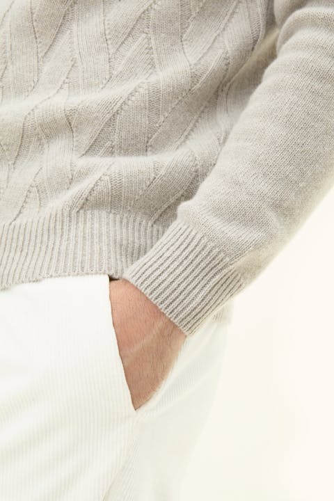 Genser med rund hals med unik struktur foran. Laget i en myk blanding av ull, kasjmir og viskose. Strikket i 7gg med 3-lags, som gir et sterkere plagg som er ideelt for kjølige høstdager.