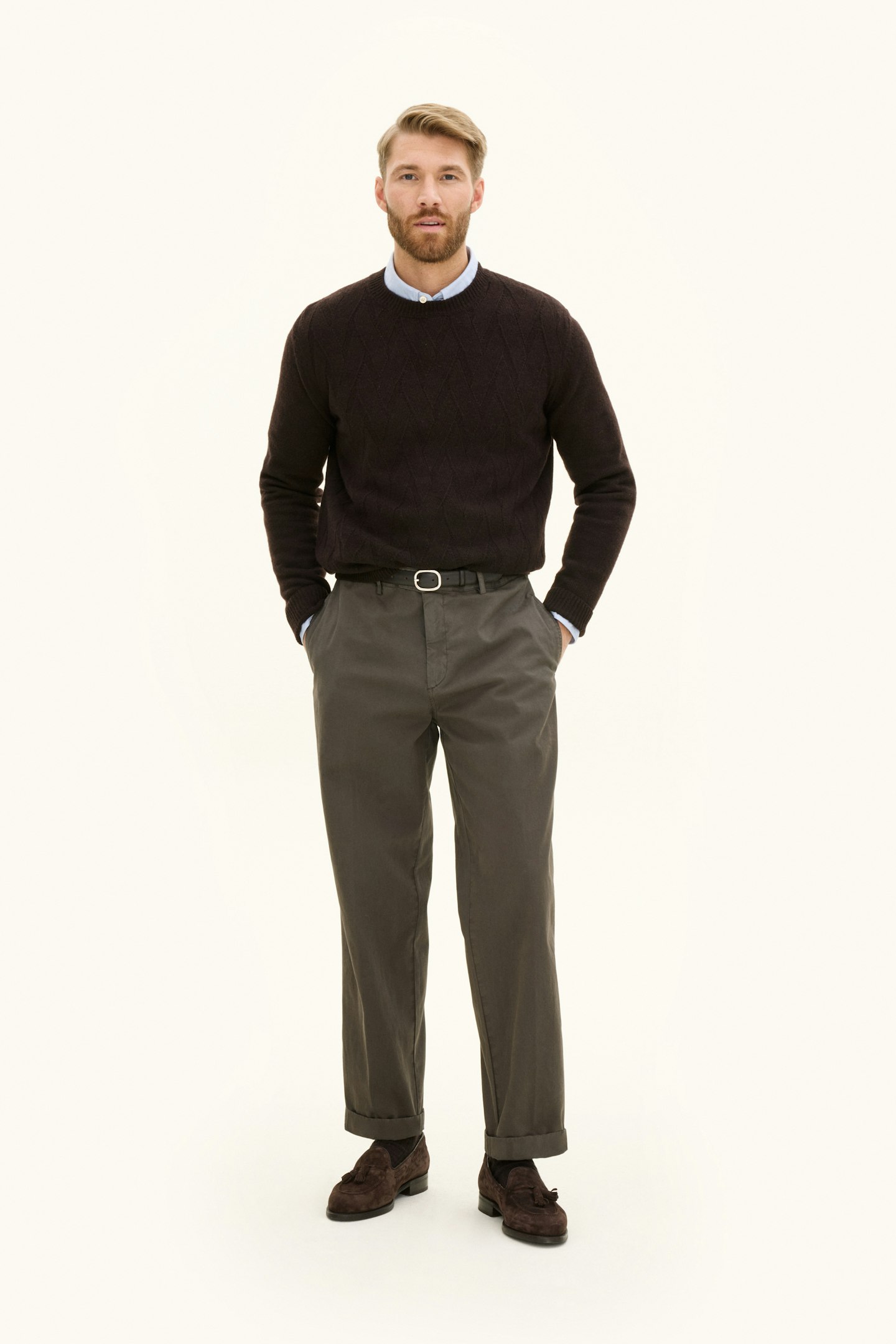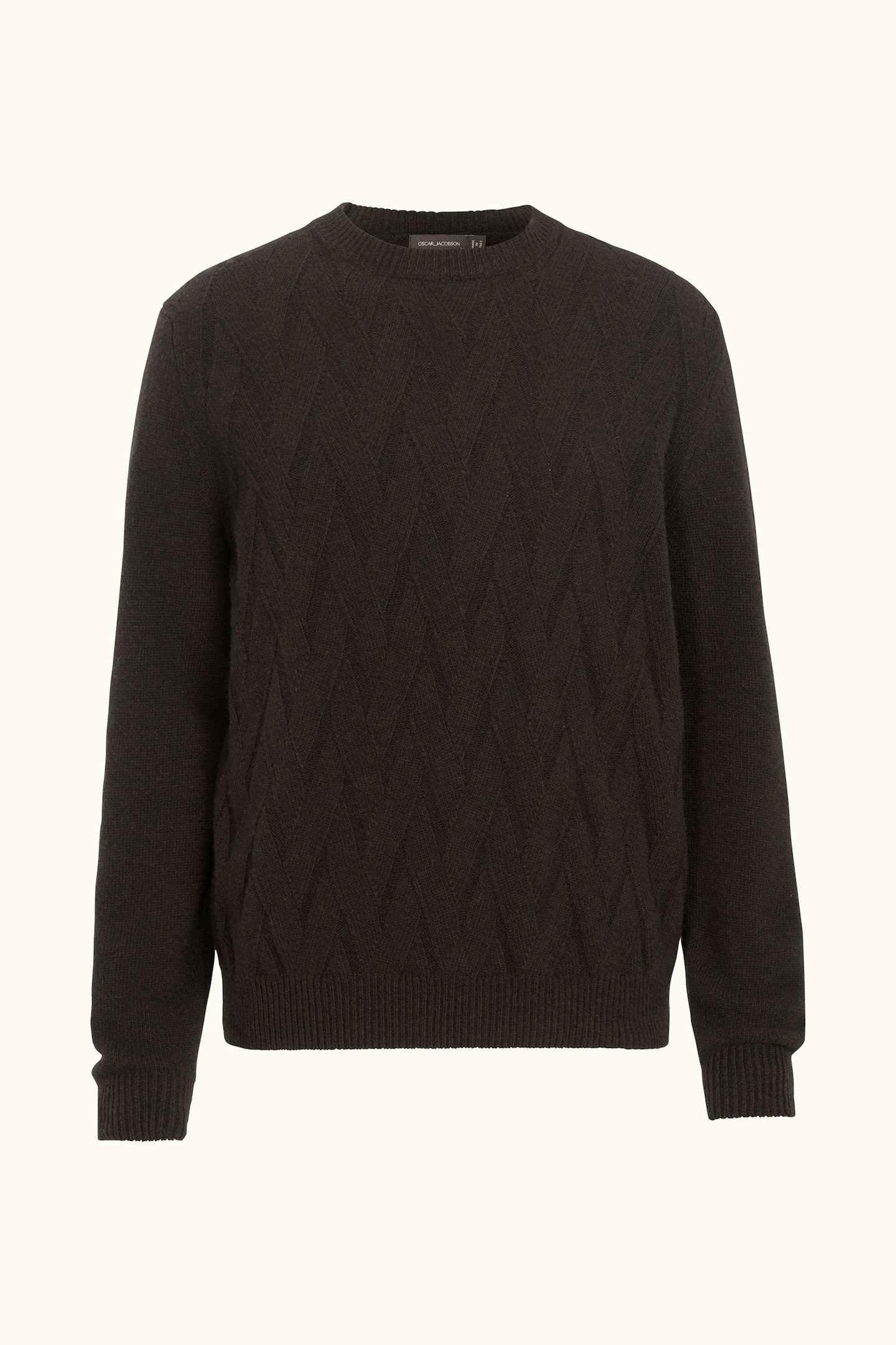 Genser med rund hals med unik struktur foran. Laget i en myk blanding av ull, kasjmir og viskose. Strikket i 7gg med 3-lags, som gir et sterkere plagg som er ideelt for kjølige høstdager.