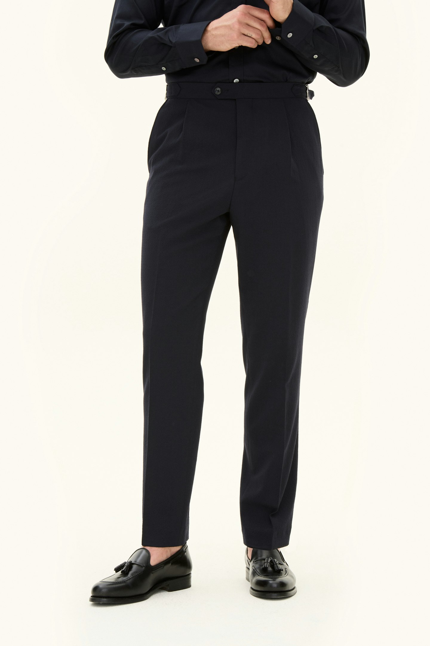 Regular Fit Seersuckerbukser Høy Midje