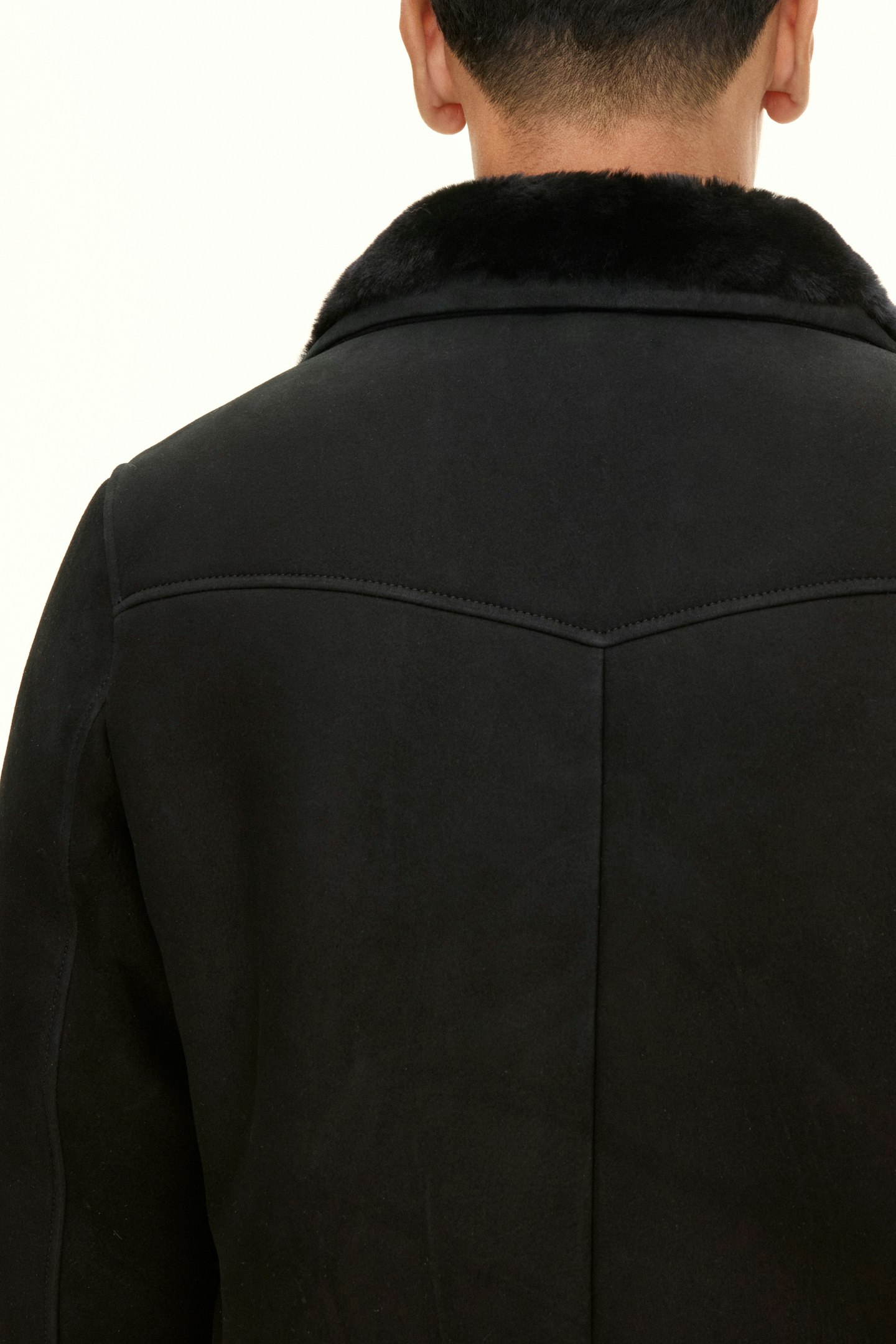 Myron Coat er et stilig og allsidig alternativ for enhver garderobe. Laget av 100% ekte skinn, har denne jakken en saueskinnfôr for ekstra varme og komfort. Den har et enkelt design og er tilgjengelig i passformen regular fit.