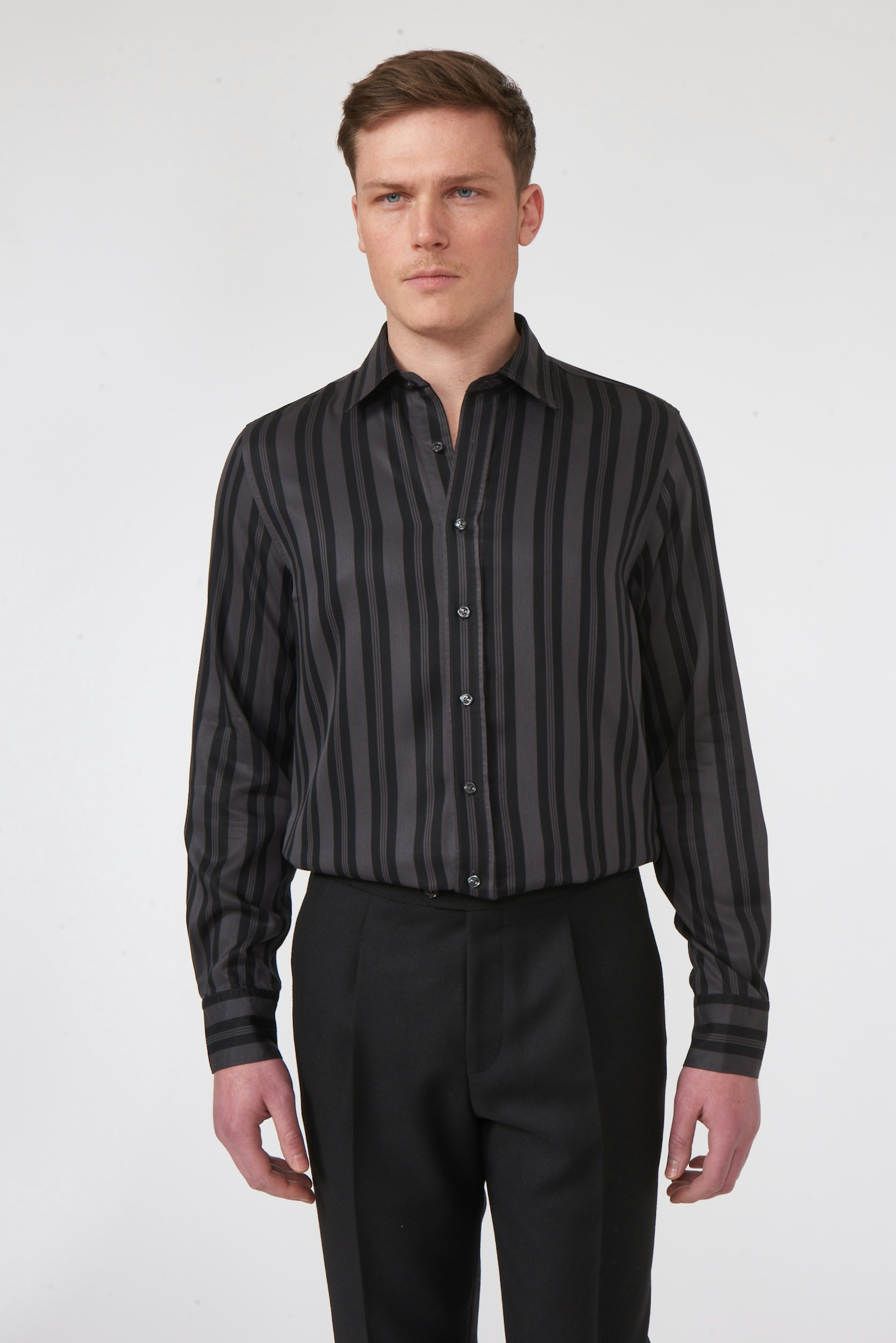 1. BRYSTVIDDE Mål fra armhule til armhule. Multipliser med 2. 2. RYGGBREDDE Mål langs ryggens søm. 3. PLAGGLENGDE RYGG Mål fra midten av nakken til skjortens nederkant 4. ERMLÆNGDE Mål fra erme/skuldersøm til ermeslutt inkl. mansjett KRAGE Mål omkretsen om din egen hals. Skjortens størrelse tilsvarer omkrets i cm. Størrelse 38 har altså 38cm i halsen.