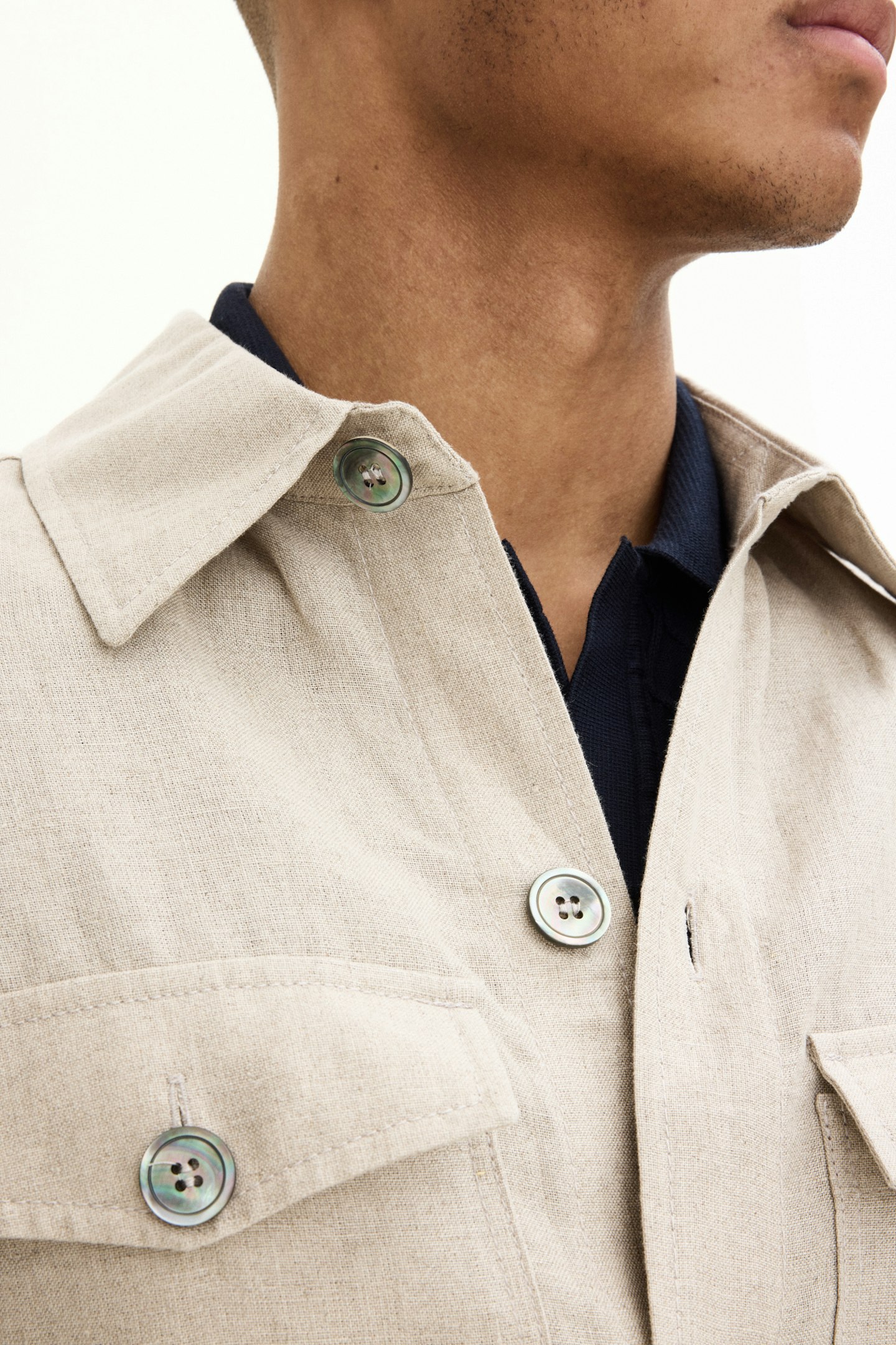 Skjortejakke i regular fit med ekte perlemorknapper. Laget av et linstoff.