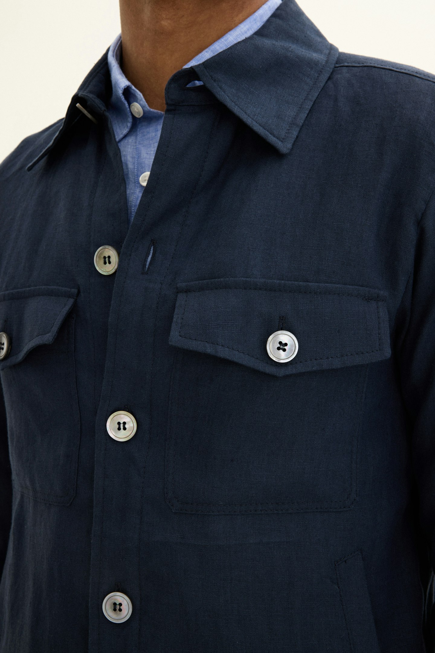 Skjortejakke i regular fit med ekte perlemorknapper. Laget av et linstoff.
