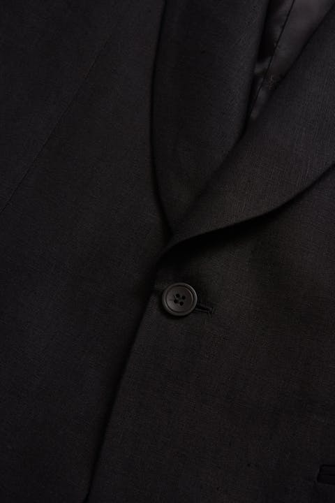 Enkeltspent smokingblazer i regular fit med konstruert skulder og helfôret innside. Blazeren er utstyrt med sjalkrage og passepoilerte lommer. Laget av et 100 % linstoff.