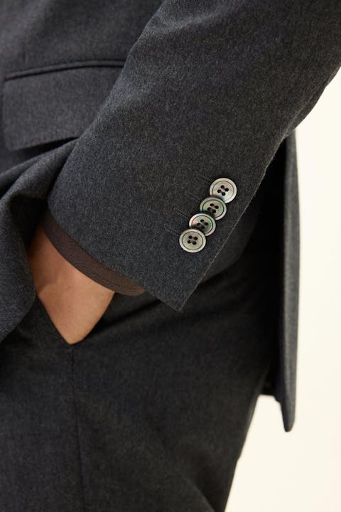 Enkeltspent dress laget av en eksklusiv ullblanding, med en vellaget regular fit passform. Et nøye utformet plagg som balanserer klassisk skreddersøm med en moderne silhuett.