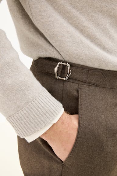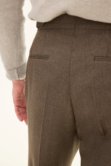 Bukse laget av en eksklusiv ullblanding, med en vellaget regular fit passform og høy midje. Et nøye utformet plagg som balanserer klassisk skreddersøm med en moderne silhuett. Perfekt for både profesjonelle sammenhenger og uformelle anledninger der stil er prioritert.