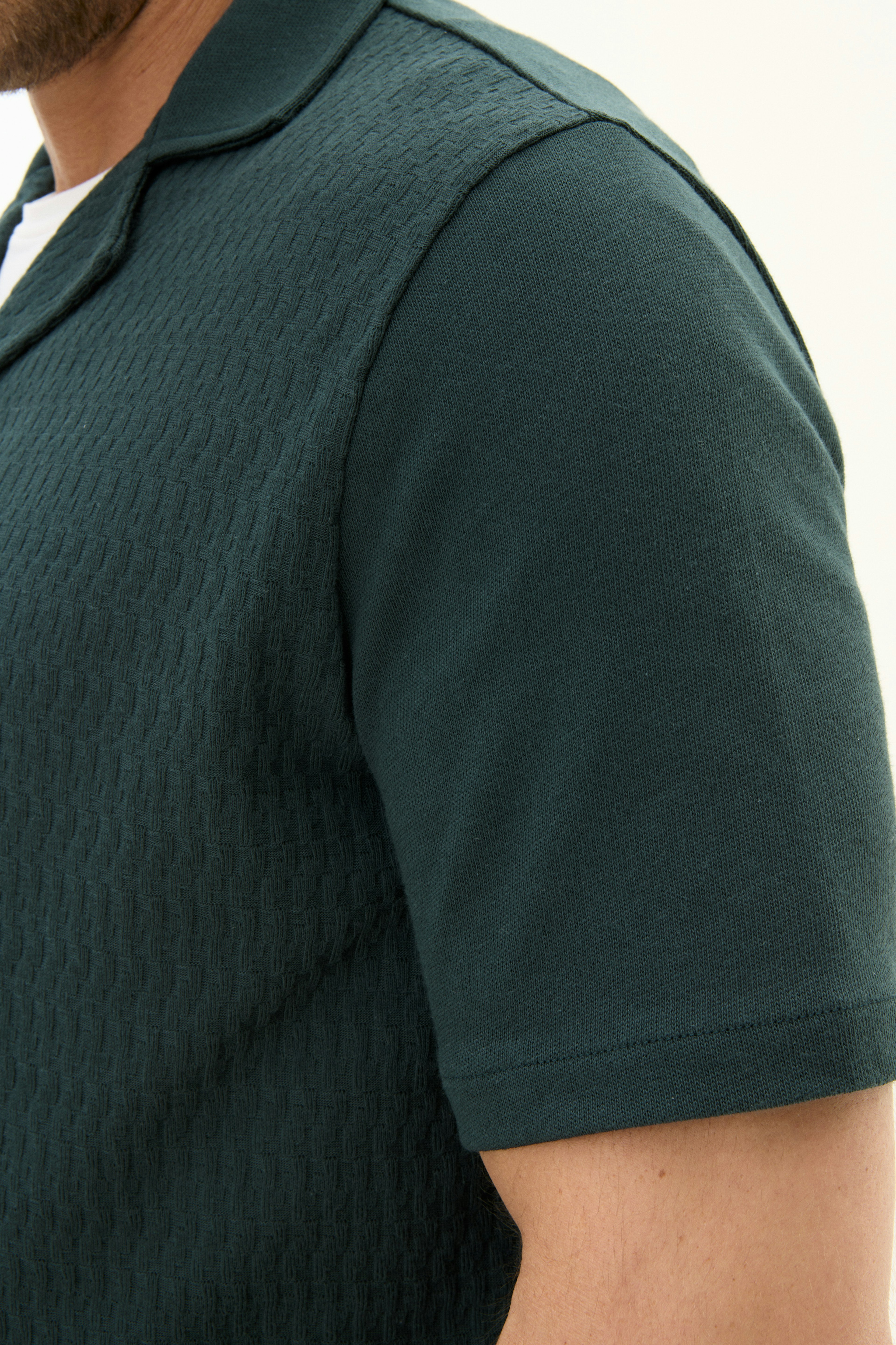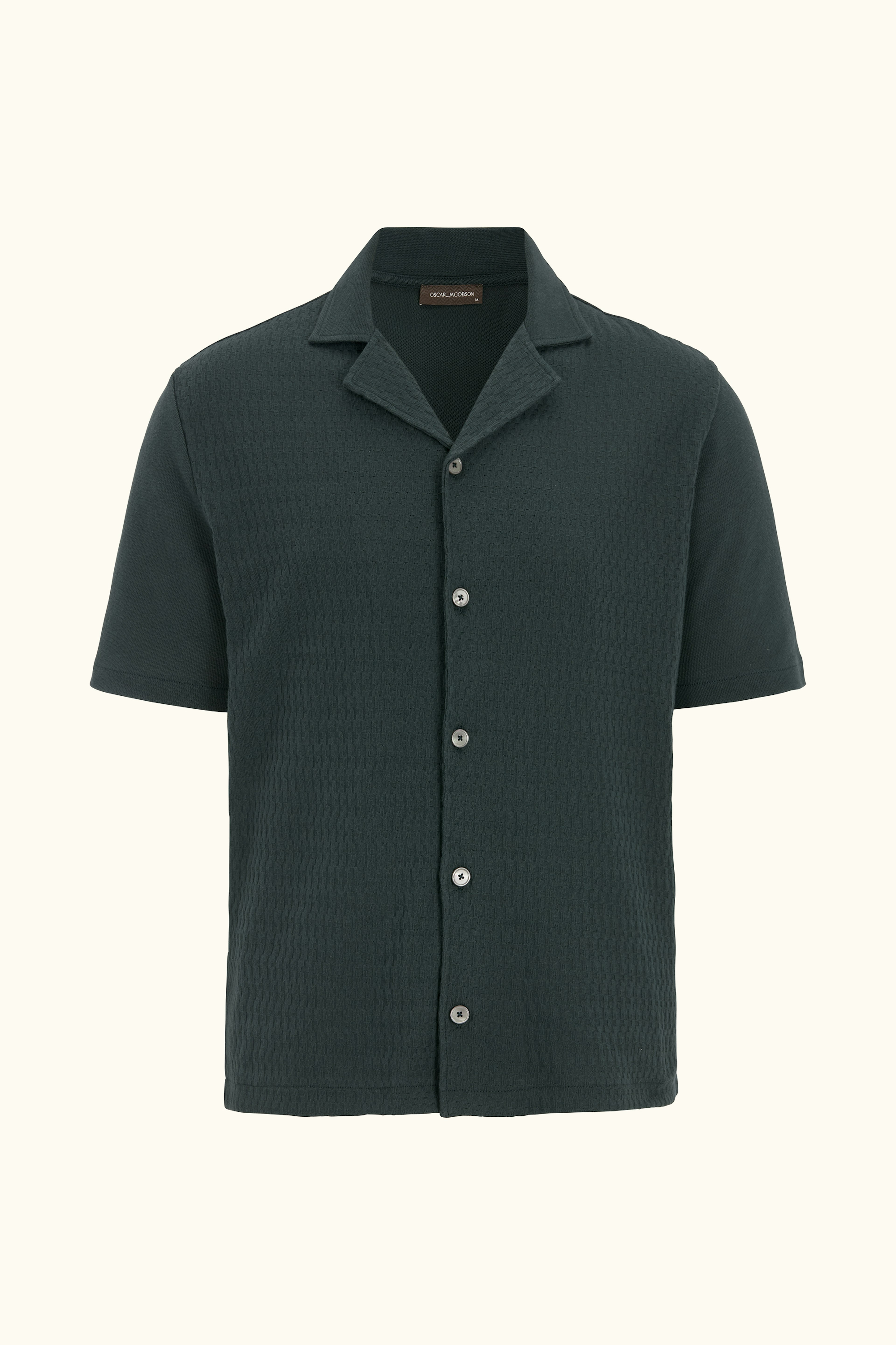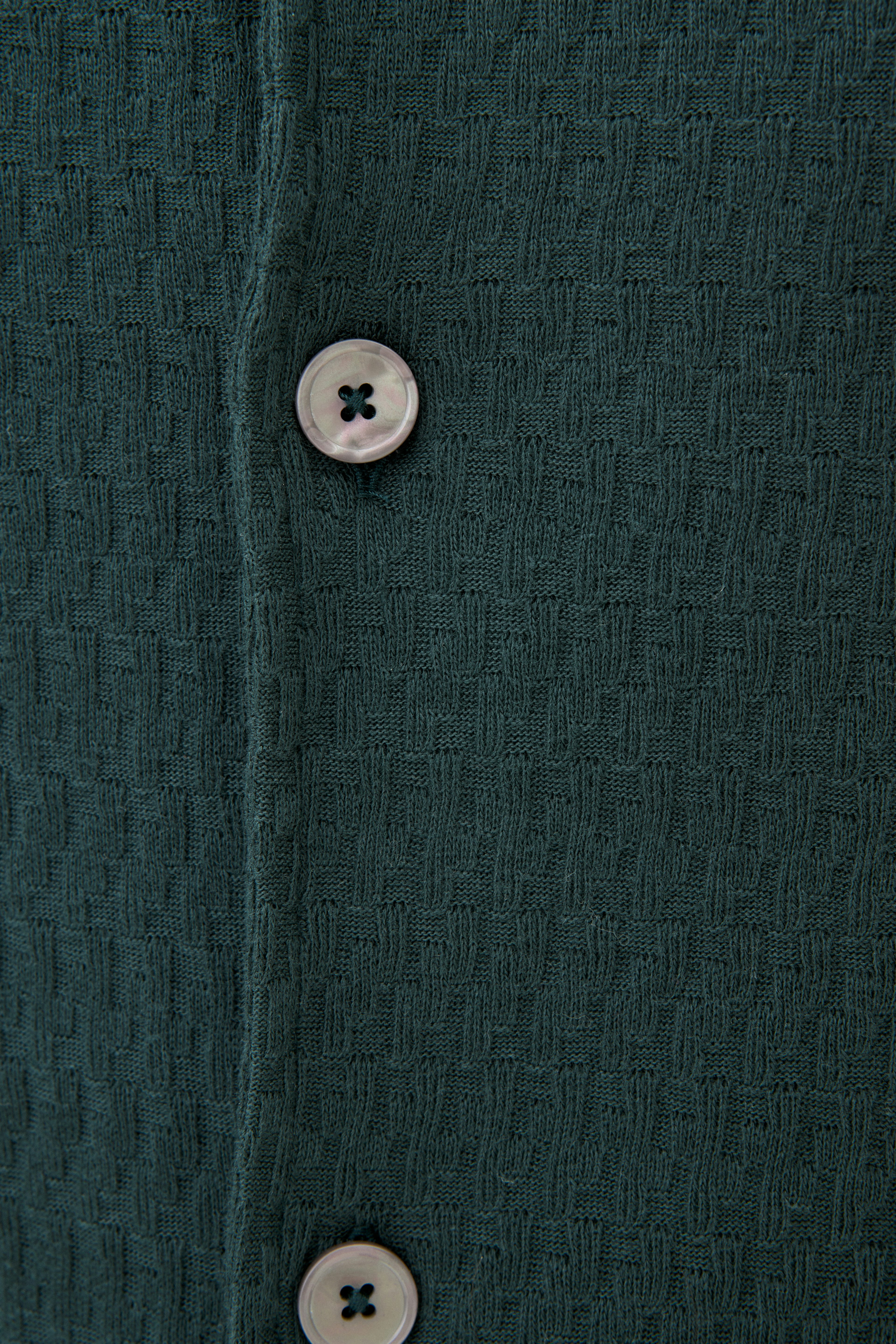 Denne kortermede strikkede skjorten av bomull er laget av bomullsjersey med en elegant struktur foran og har perlemorknapper som bidrar som en sofistikert detalj. Et behagelig og luftig plagg som er perfekt for varme sommerdager.