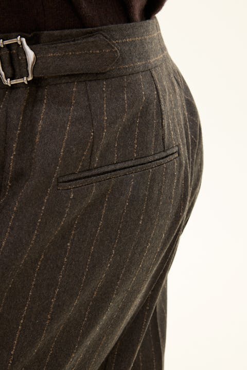 Buksen er laget av en myk ullblanding og har en regular fit passform for en smidig passform samtidig som de bevarer elegansen. Den høye midjen og det rene uttrykket skaper et allsidig plagg som fungerer like bra til hverdags som til mer formelle anledninger.