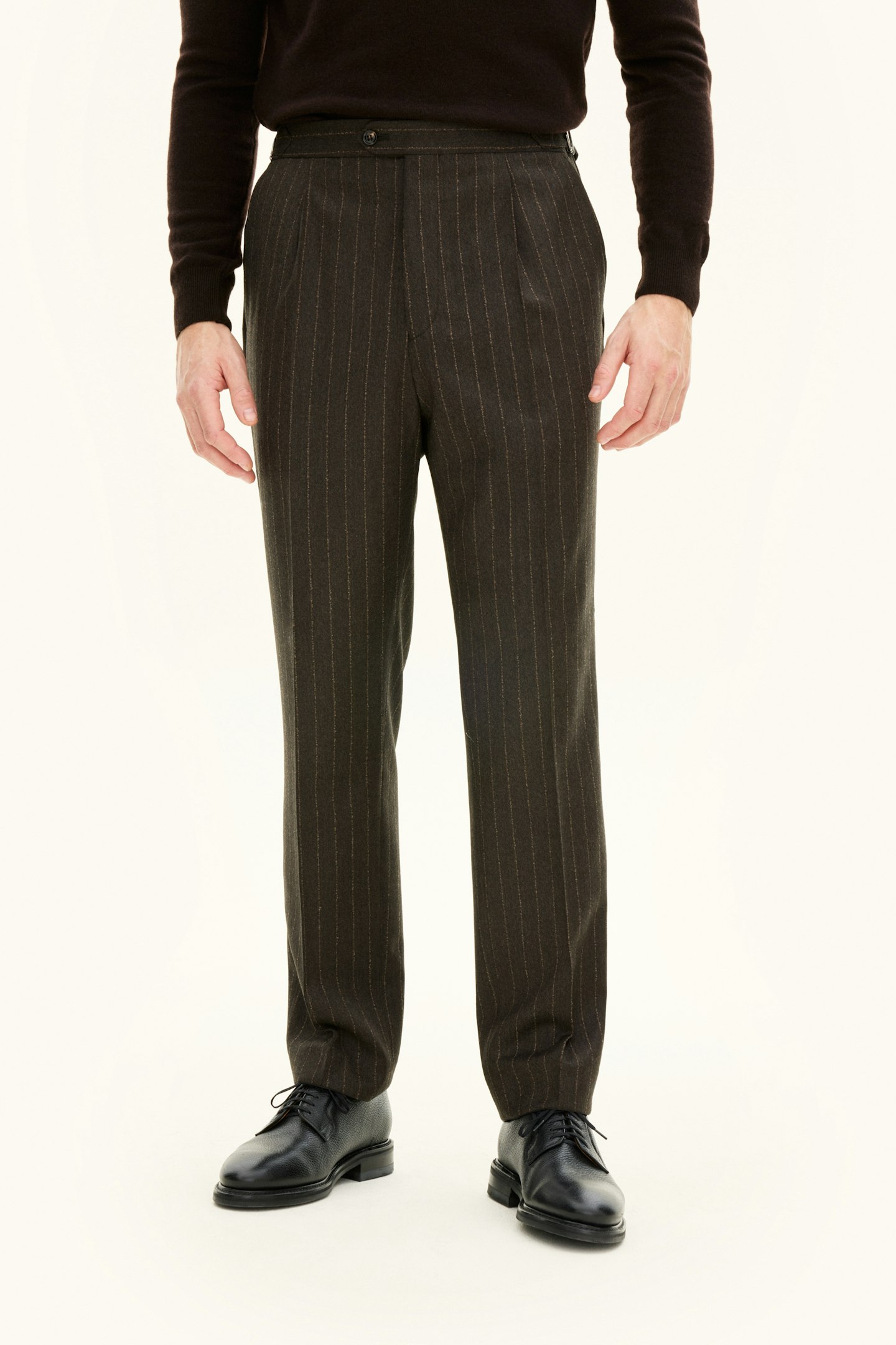 Regular Fit Stripete Flanellbukser Høy Midje