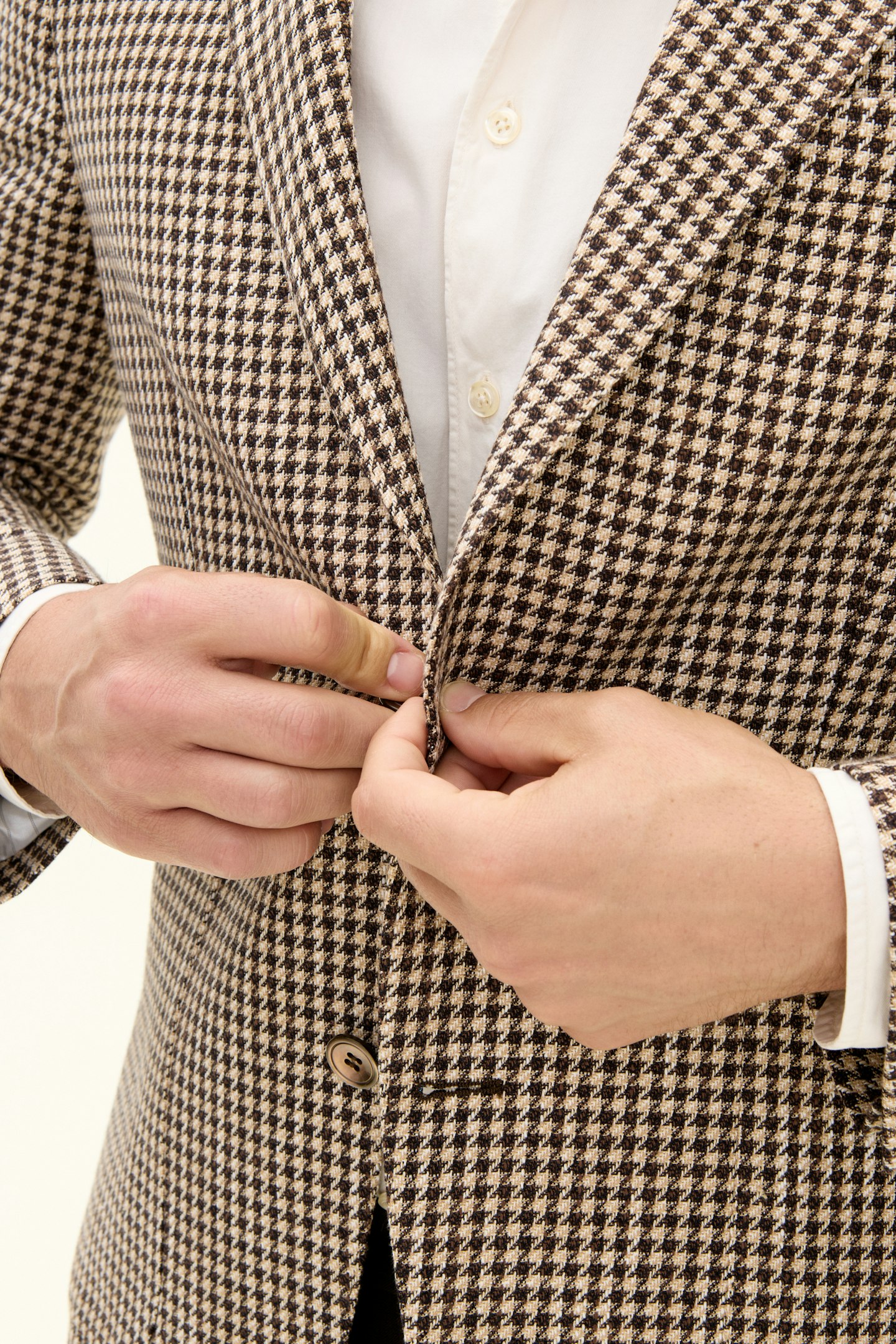 Laget av en myk bomullsblanding, har denne blazeren en regular fit. Den er designet med et tidløst mikromønster, laget med vevd konstruksjon og en raffinert hopsacktekstur. Designet for å komplementere enhver garderobe med sin tidløse eleganse.