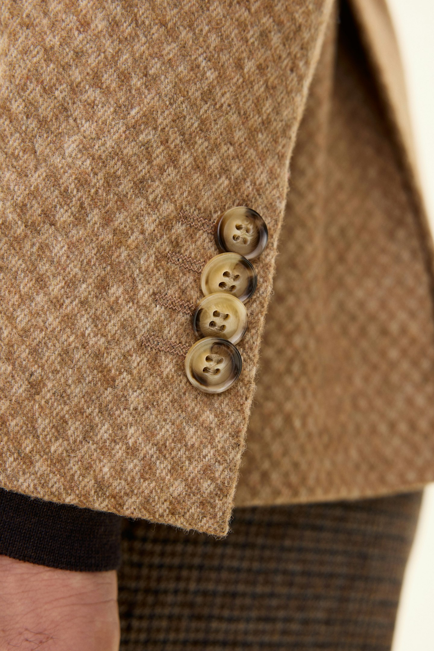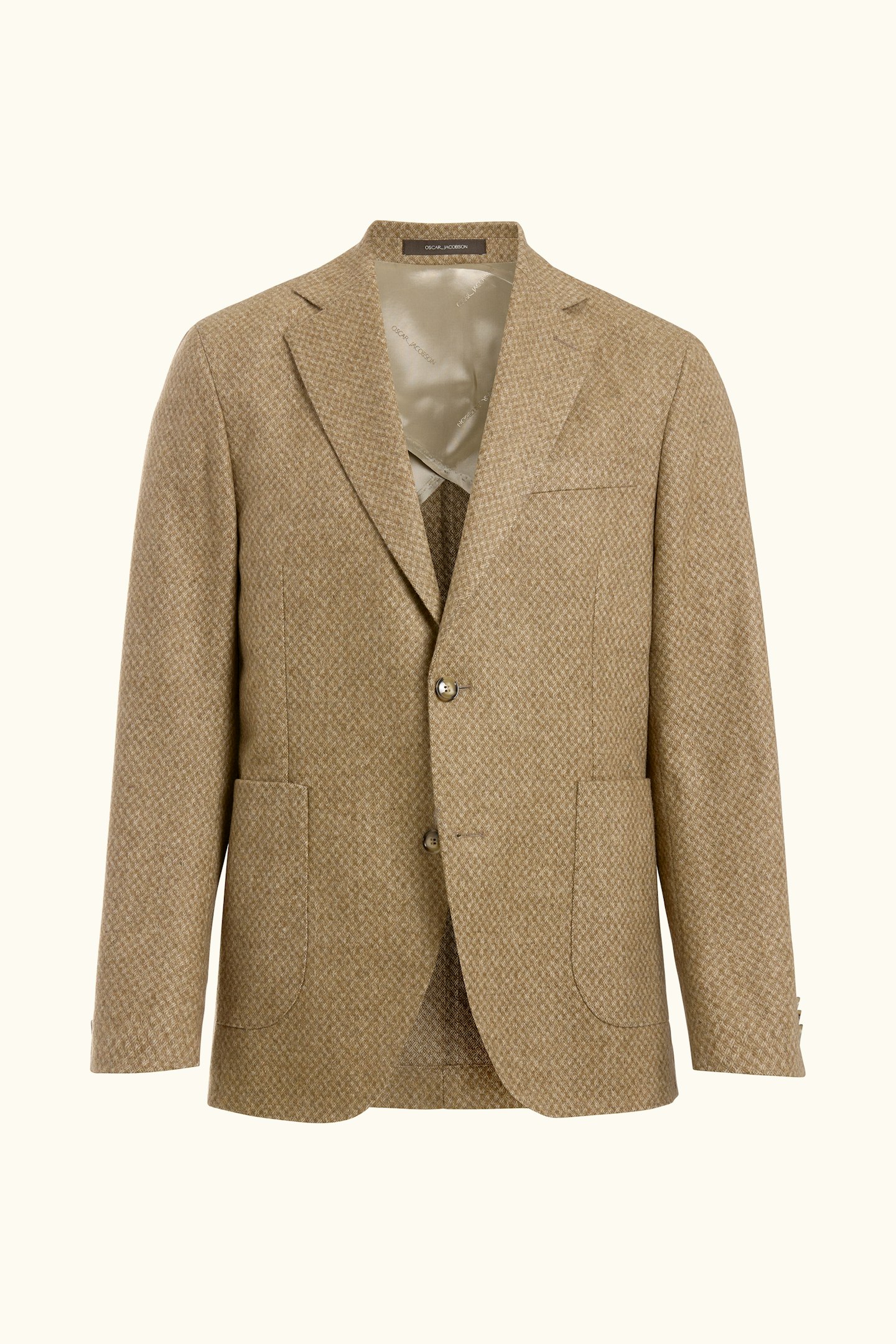 Denne blazeren i ullblanding har en regular fit og enkelspent front. Den ukonstruerte skulderen og det diskrete diamantmønsteret gir et moderne, men tidløst uttrykk. Et sofistikert plagg som fungerer utmerket både på kontoret og i mer avslappede sammenhenger.
