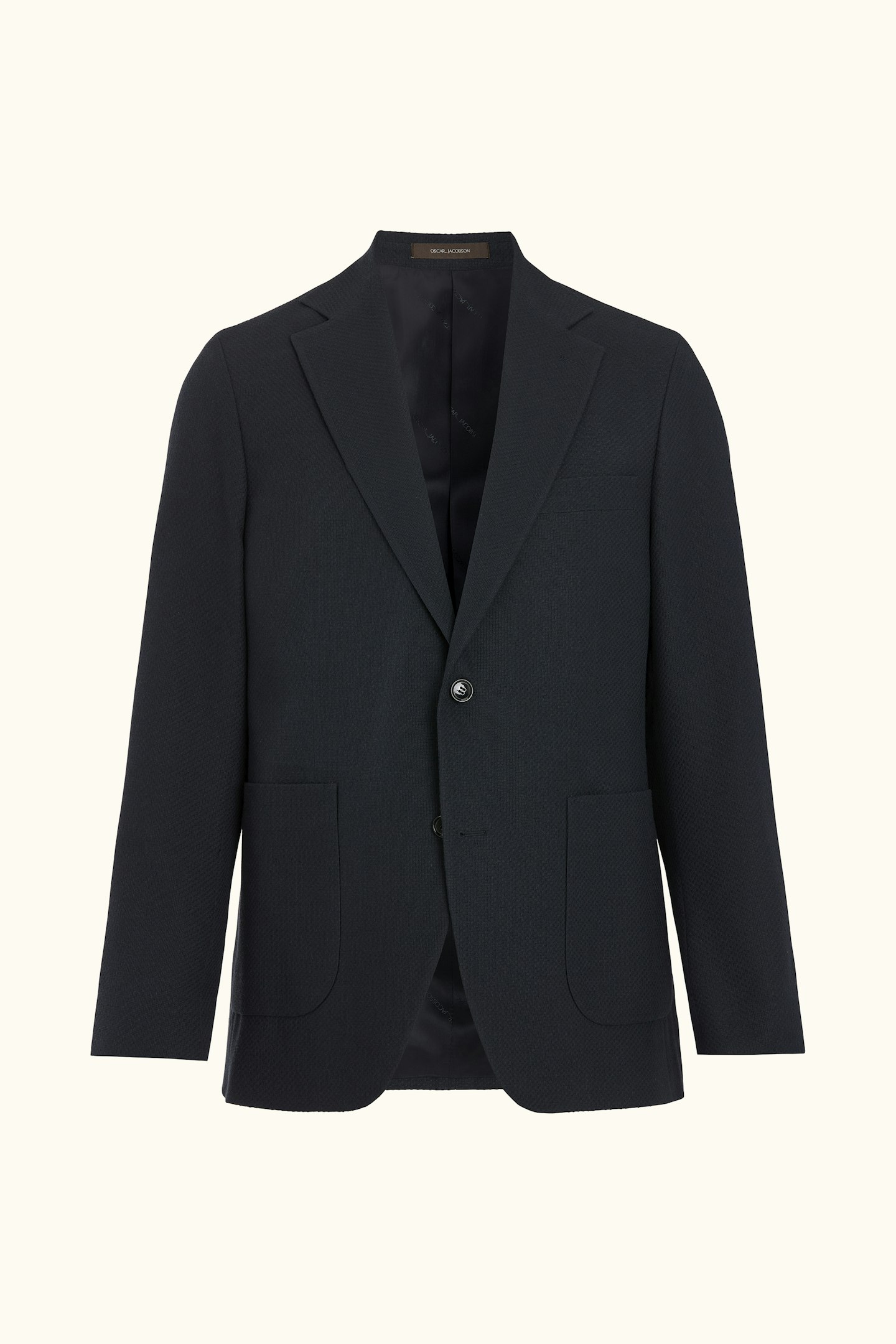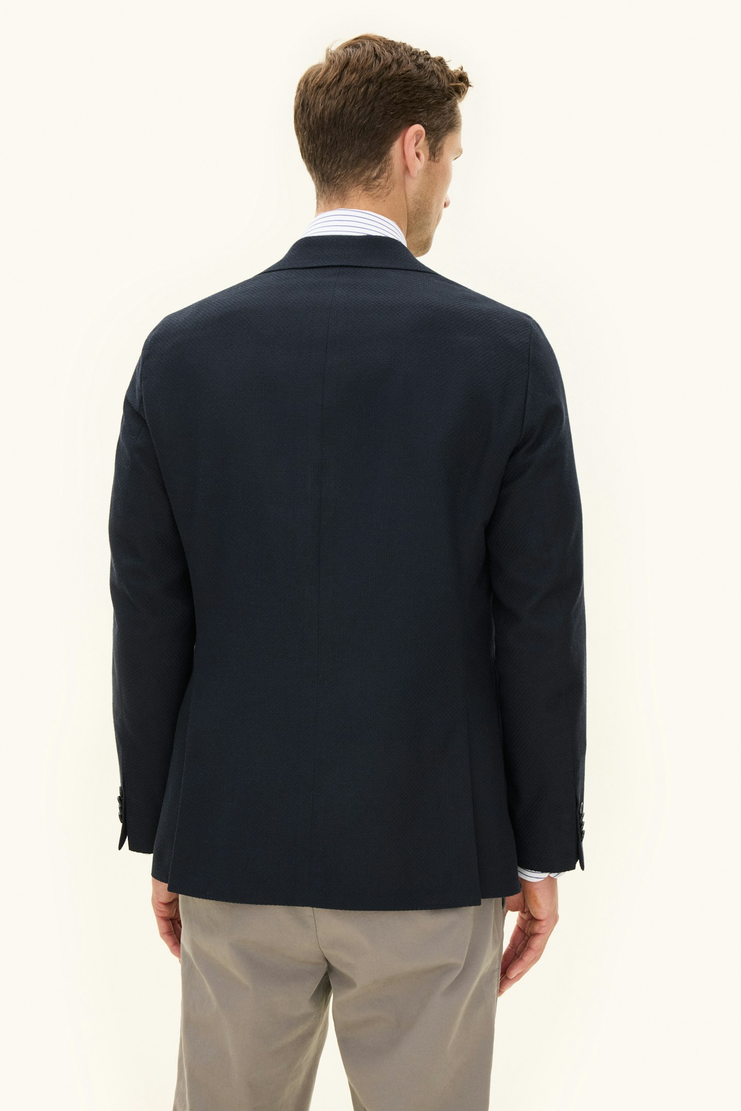 En enkeltspent blazer i strukturert twillvev av bomullsblanding. Den myke konstruksjonen skaper en smidig silhuett med naturlig fall. Regular fit-silhuetten gir et moderne, balansert uttrykk som passer like godt i formelle sammenhenger som i mer uformelle kombinasjoner.