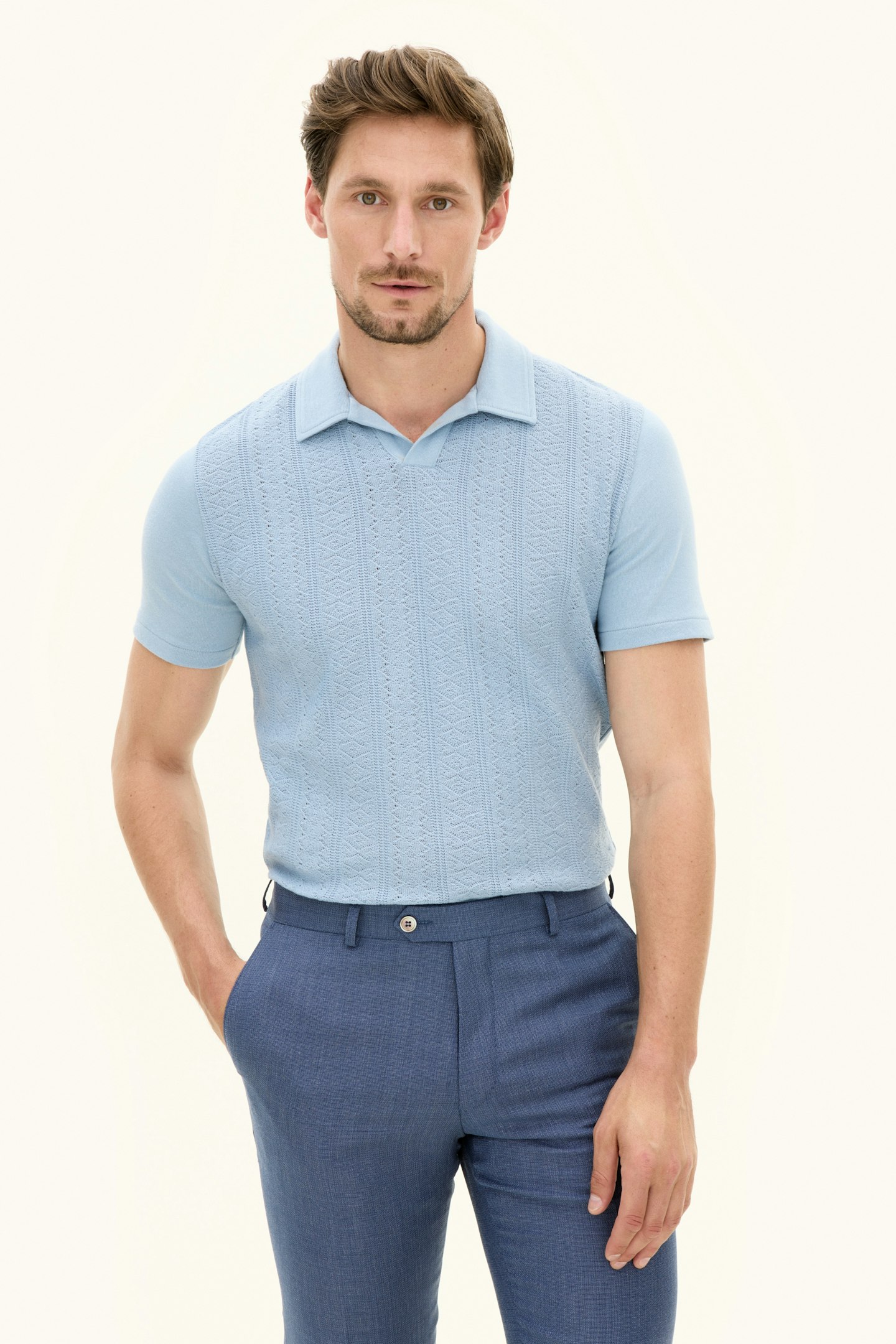 En kortermet piqueskjorte av bomullsjersey med subtil struktur foran. Et allsidig, behagelig plagg som i tillegg gir en velkledd look. Perfekt for varme dager.