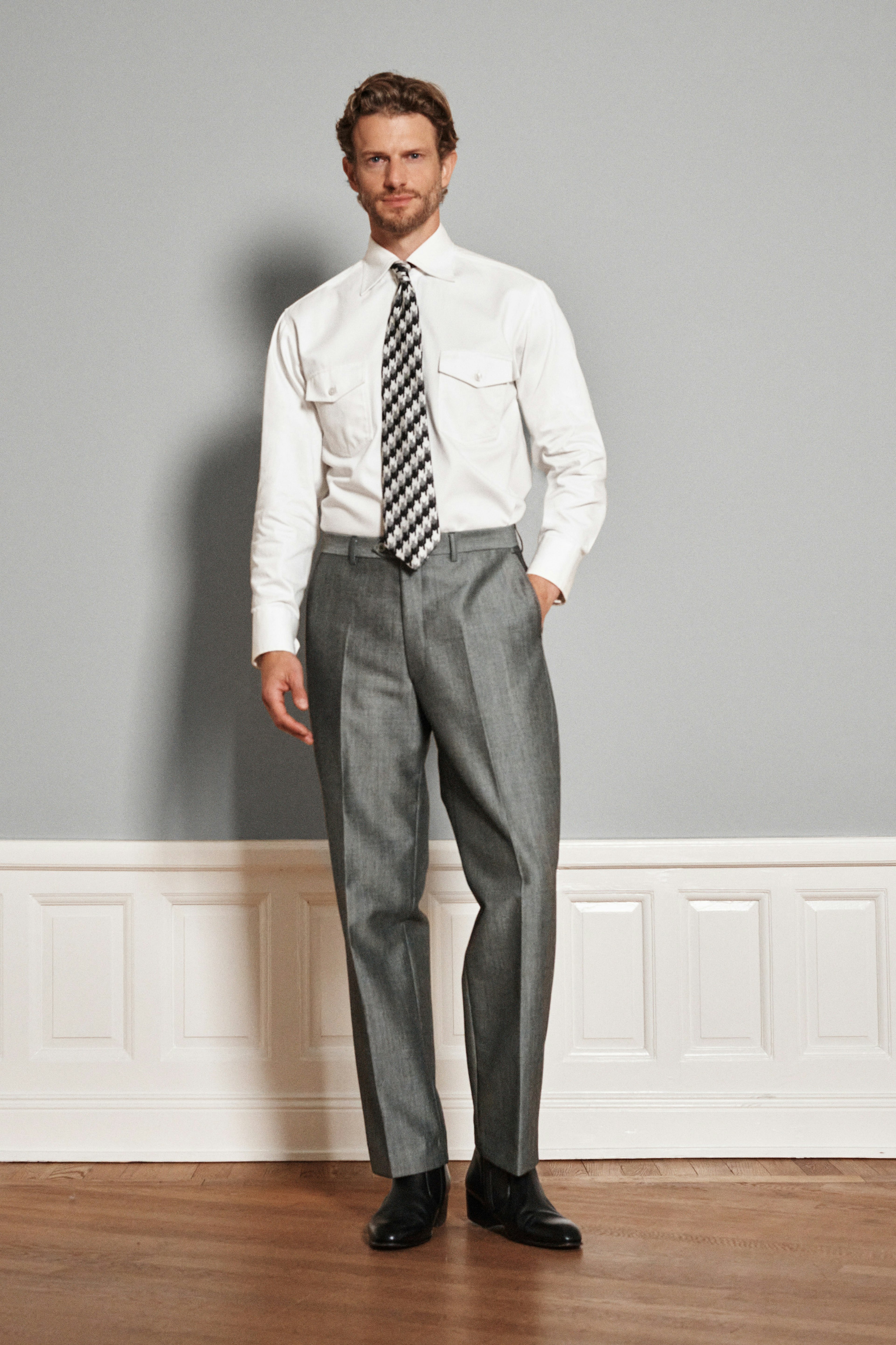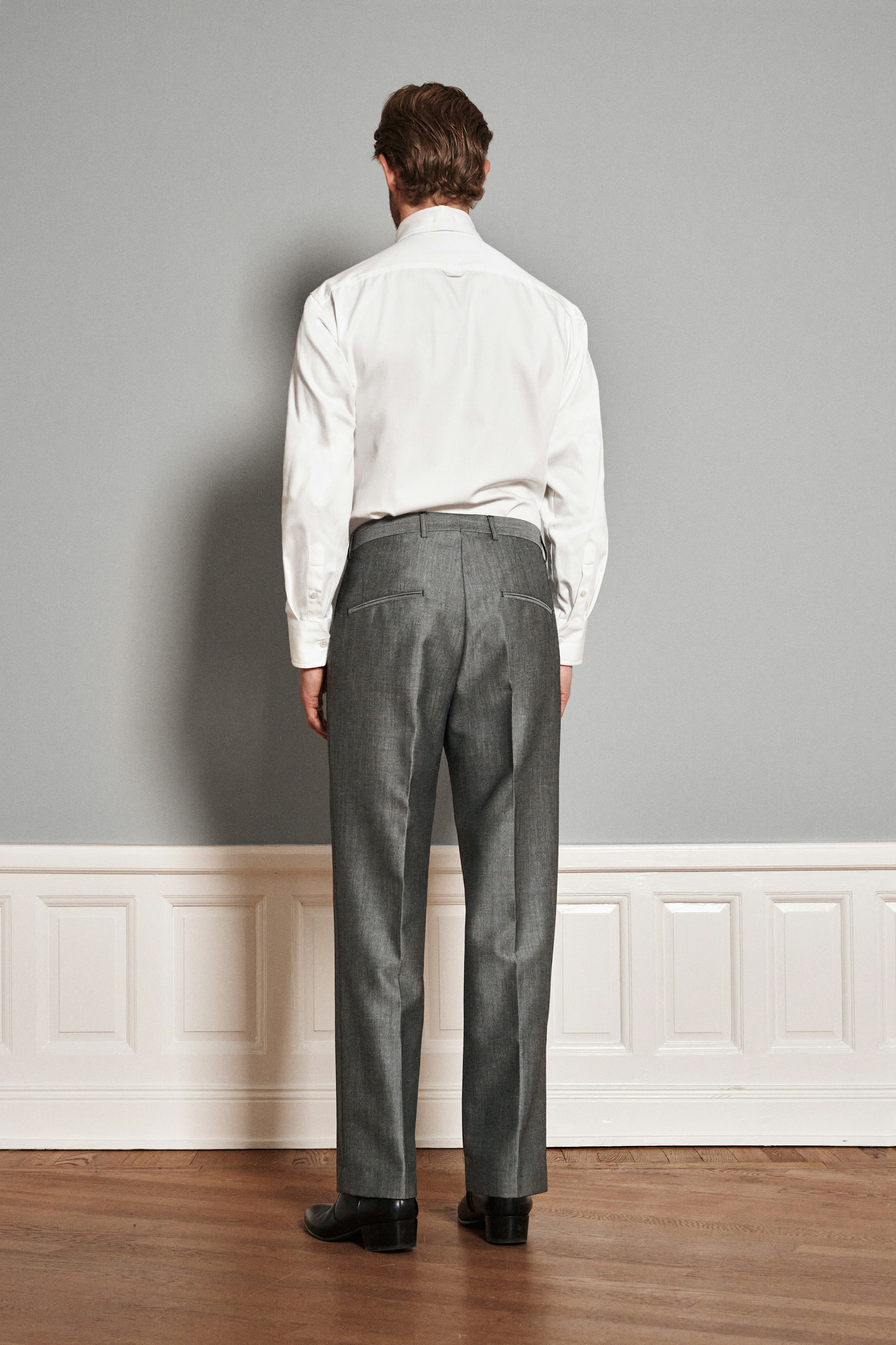 Dette produktet er en del av Oscar Jacobsons Legacy-kolleksjon, som har utspring i klassisk herremote og vår rike historie. Vi har hentet inspirasjon fra modeller i vårt omfattende arkiv og skapt moderne versjoner av eldre plagg, der vi kombinerer moderne stoffer og tekniske løsninger met et historisk utrykk. Bukser laget i en tyngre ull- og mohairkvalitet som gir både struktur og et elegant fall. Passformen er klassisk med subtile, moderne justeringer, inspirert av silhuetter fra vårt over hundre år gamle arkiv. Med sitt omsorgsfulle håndverk og tidløse uttrykk er dette et plagg som forener tradisjon og samtid.
