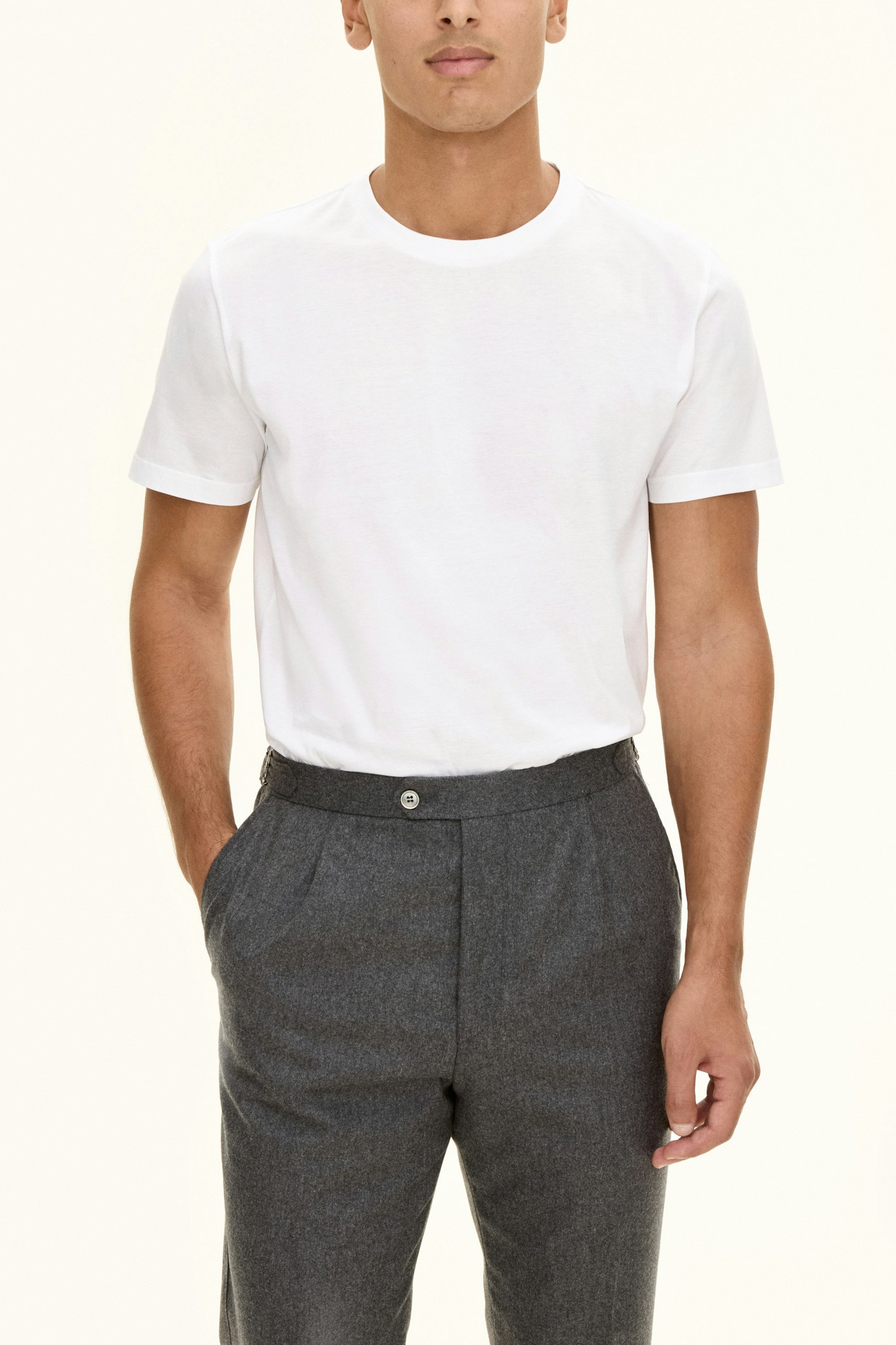 Laget av 100% bomull, har denne t-skjorten en regular fit. Den er designet med en sofistikert rund krage. Stylet med et tidløst ensfarget mønster, laget med strikket konstruksjon. Et essensielt plagg som materialiserer klassisk stil.