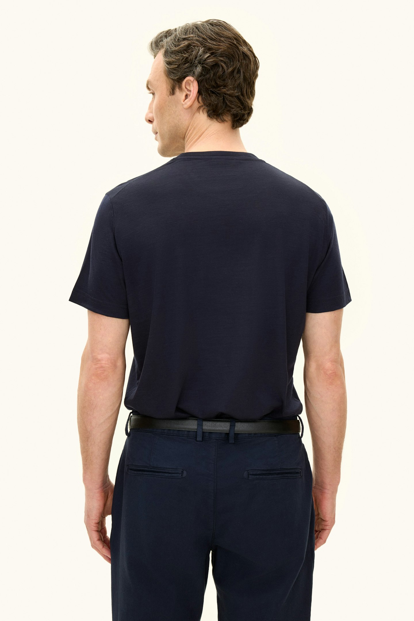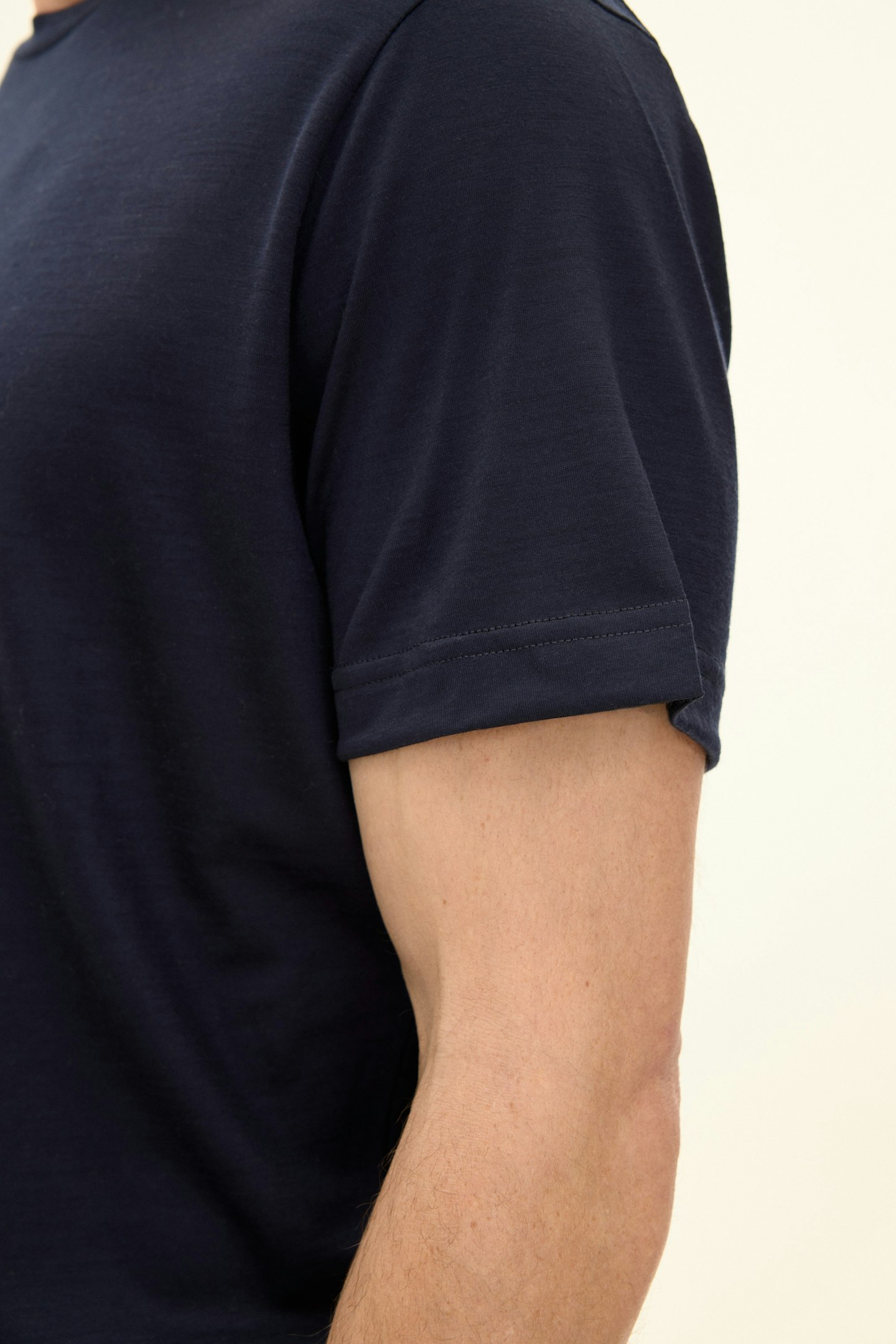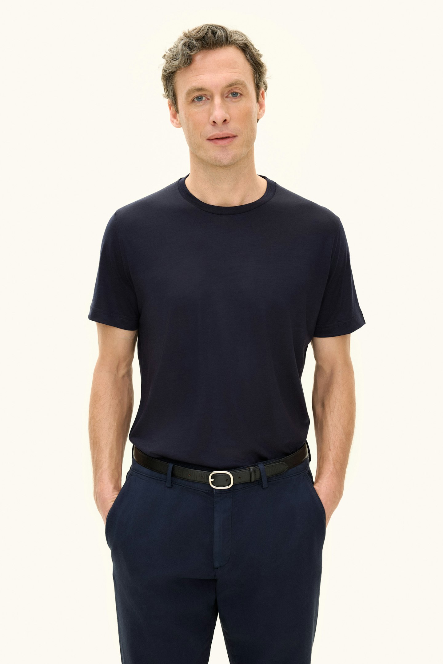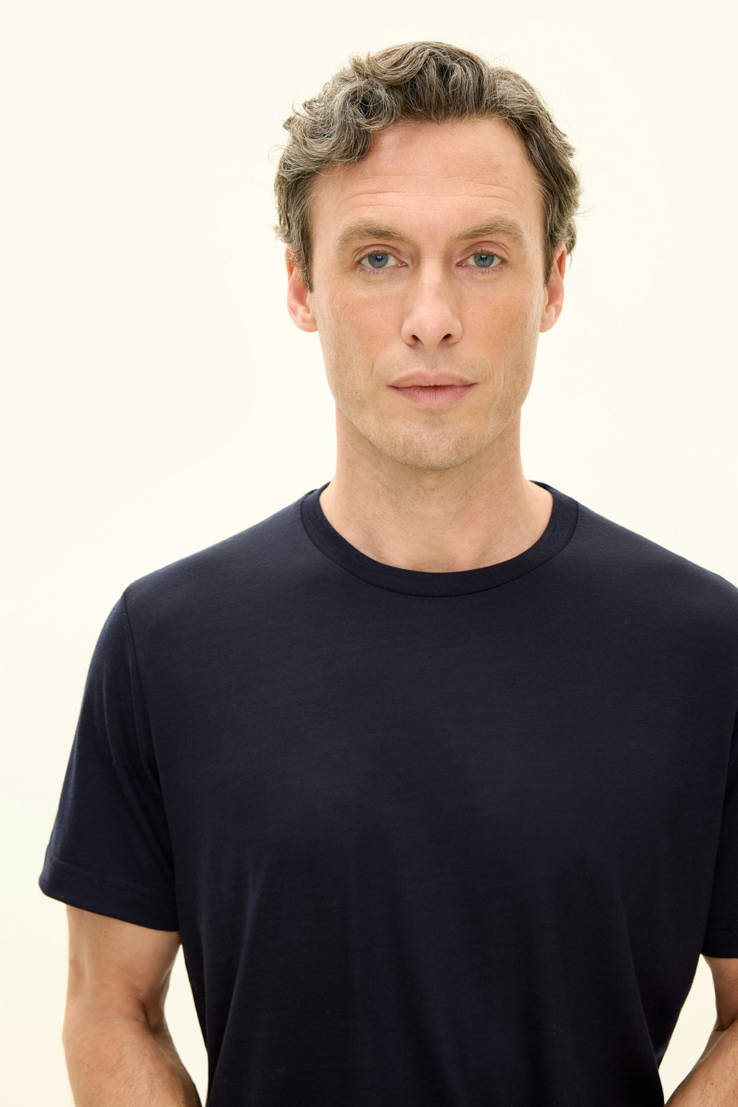 En T-skjorte laget av 100 % ull, strikket for en myk og smidig følelse. Den runde halsen og regular fit passformen skaper et rent og tidløst utseende. Et lettbrukt plagg som passer like godt under en jakke som alene.