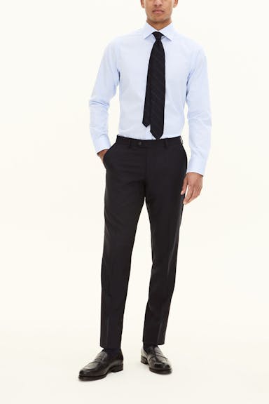 Vår smale og formelle dress i italiensk super 120’s ull. Finnes nå i flere alternativer. En del av Oscar Jacobsons signaturkolleksjon.