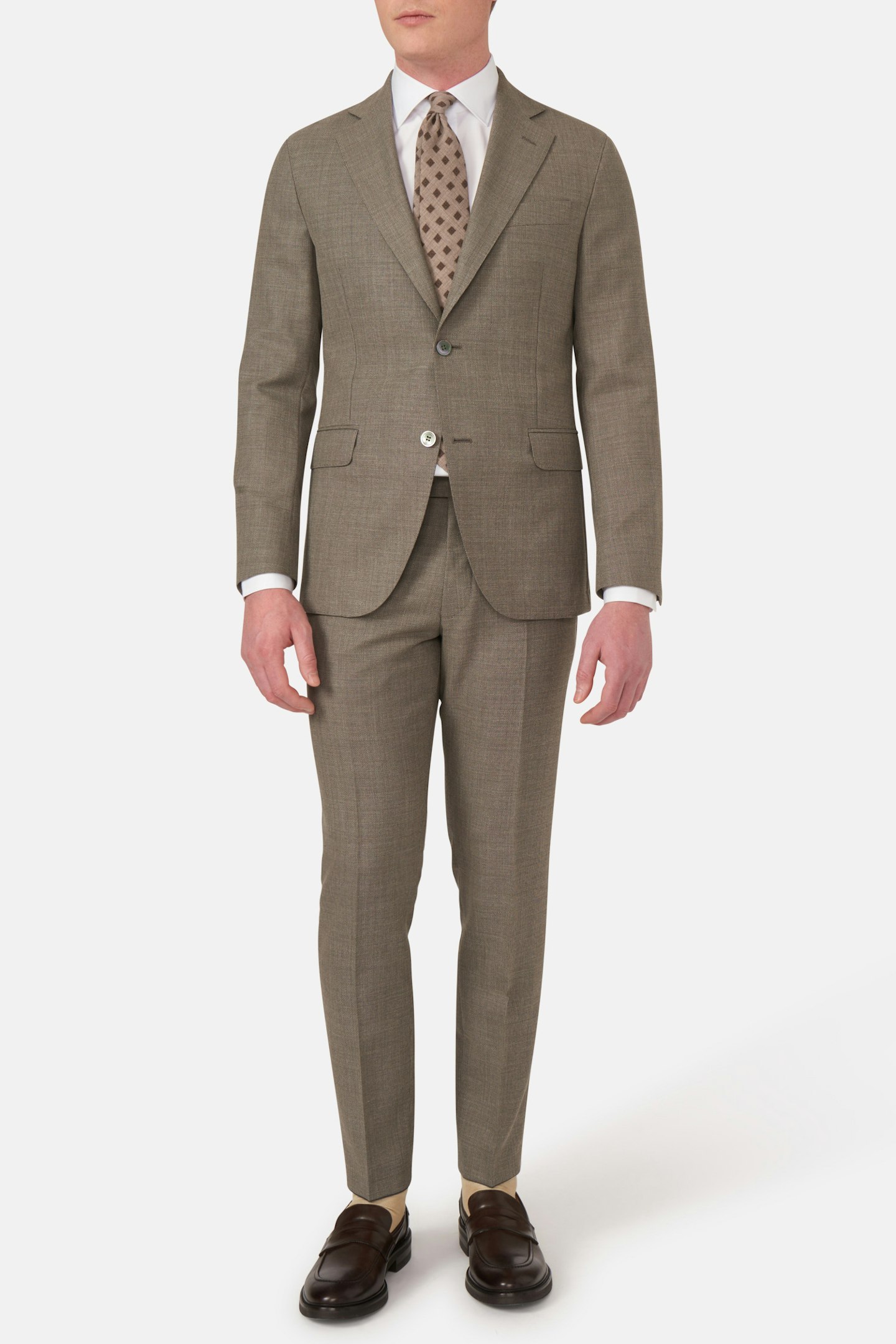 Enkeltspent dress i regular passform med halvfôret innside og en mykt konstruert skulderdel som bidrar til økt komfort og et mer avslappet uttrykk. Laget i en lett og luftig Fresco-kvalitet, en løstvevd høytwistet ull med elegant mikrostruktur. Denne buksemodellen har en normalhøy midje.
