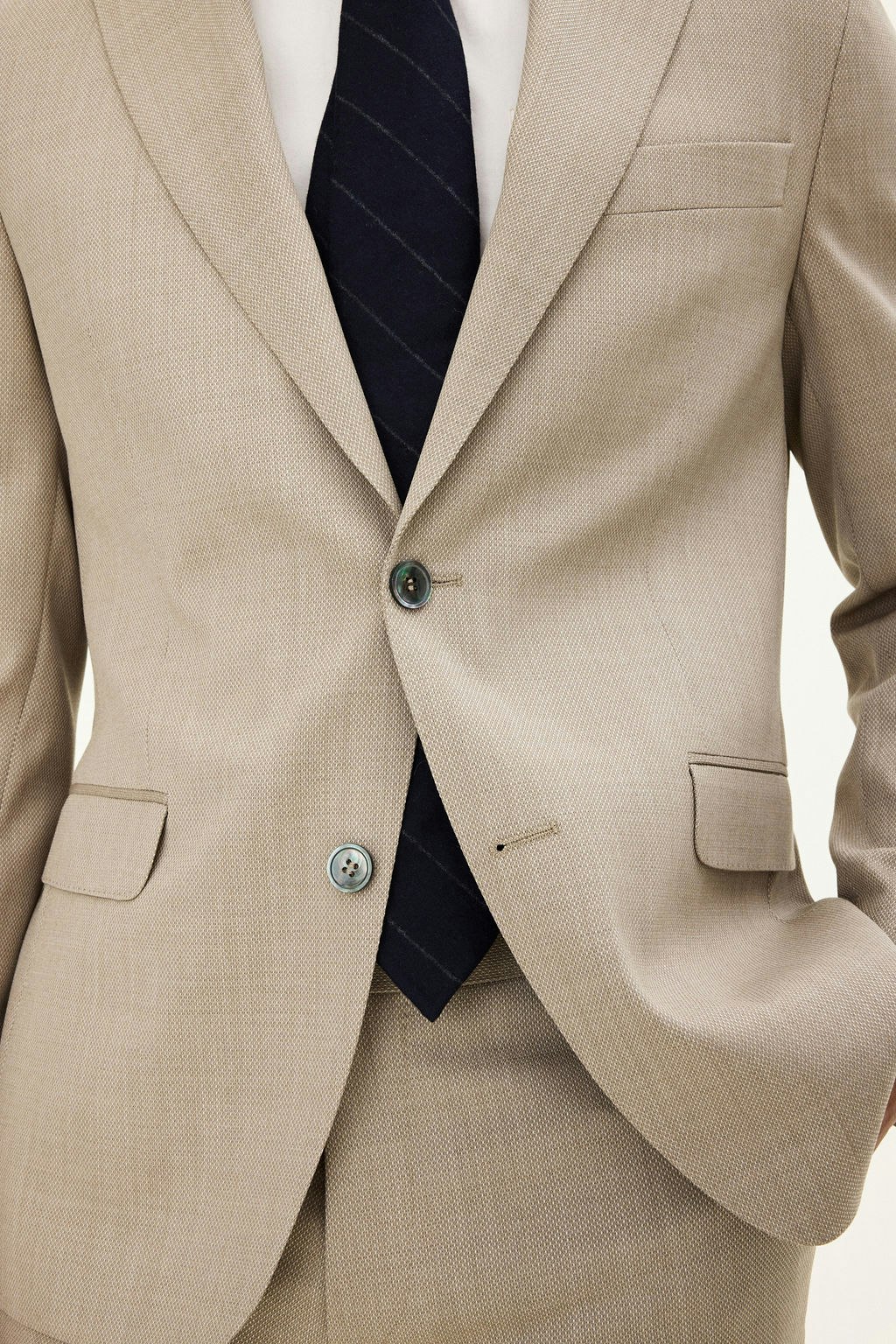 Laget av 100% ull fra vår vever Marzotto, er denne dressen et utmerket valg for både jobben og for festen. Modellen er helfôret og har et mykt formet bryst- og skulderparti. Passformen er av et moderne snitt, men litt romsligere enn våre smaleste modeller.
