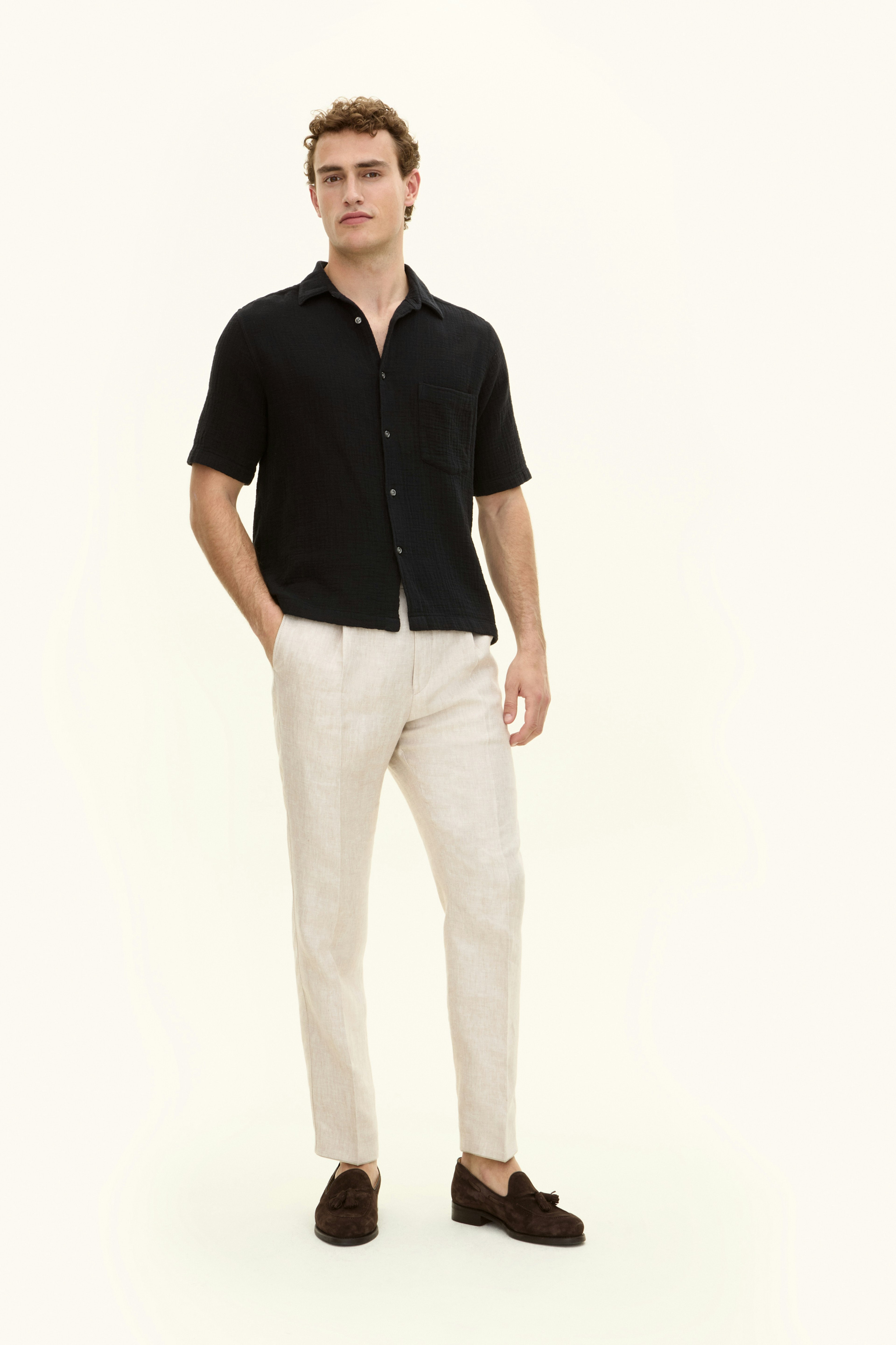 Vår regular fit city skjorte er laget av 100% bomullskreppstoff, noe som gir den en unik tekstur og følelse. Semi cutaway-krage legger til et snev av sofistikering til dette allsidige plagget. Materiale: 100% bomull.