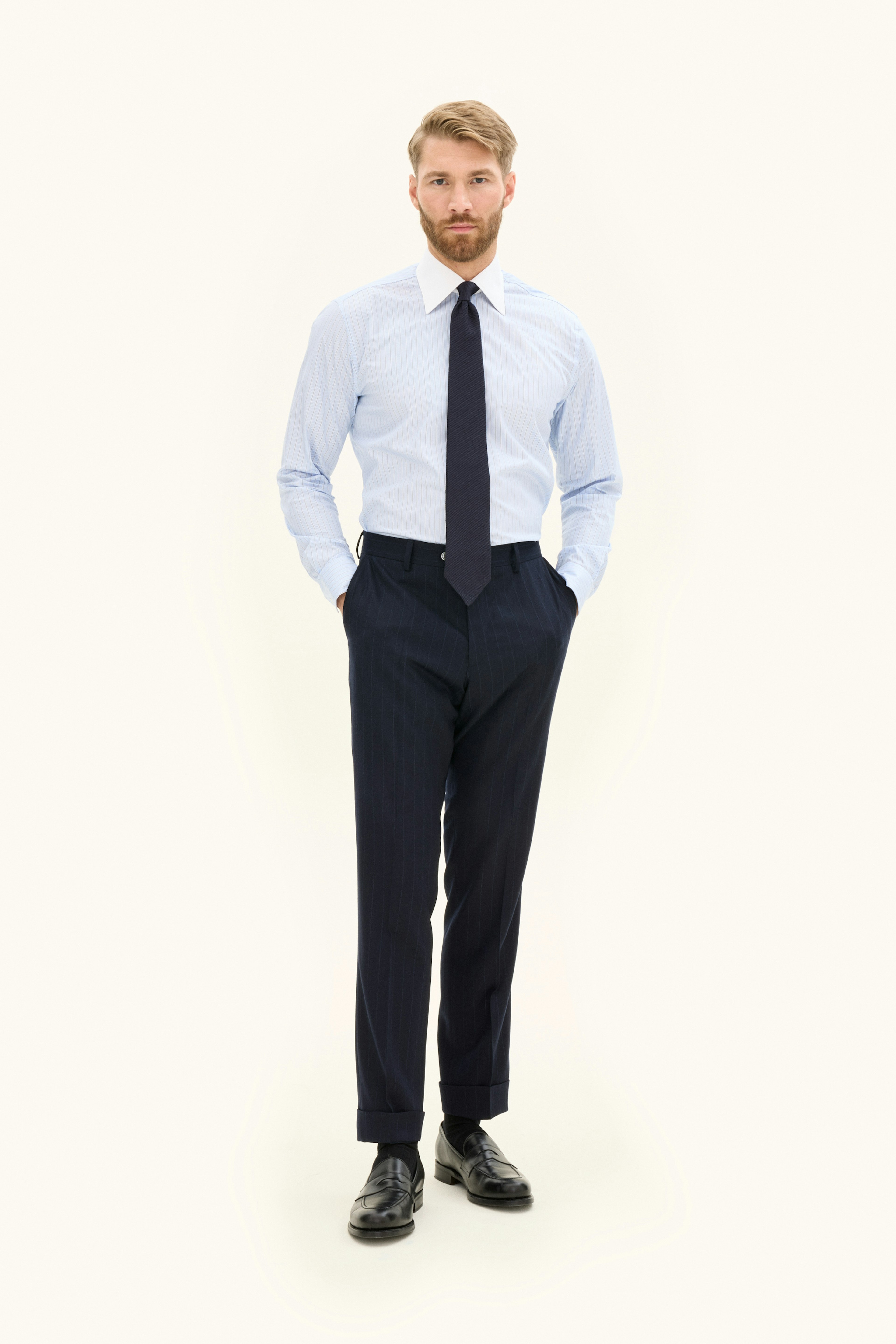 En skjorte i 100 % bomull for et avslappet utseende med turndown-krage og enkel mansjett. Gir et velkledd inntrykk uansett kontekst.