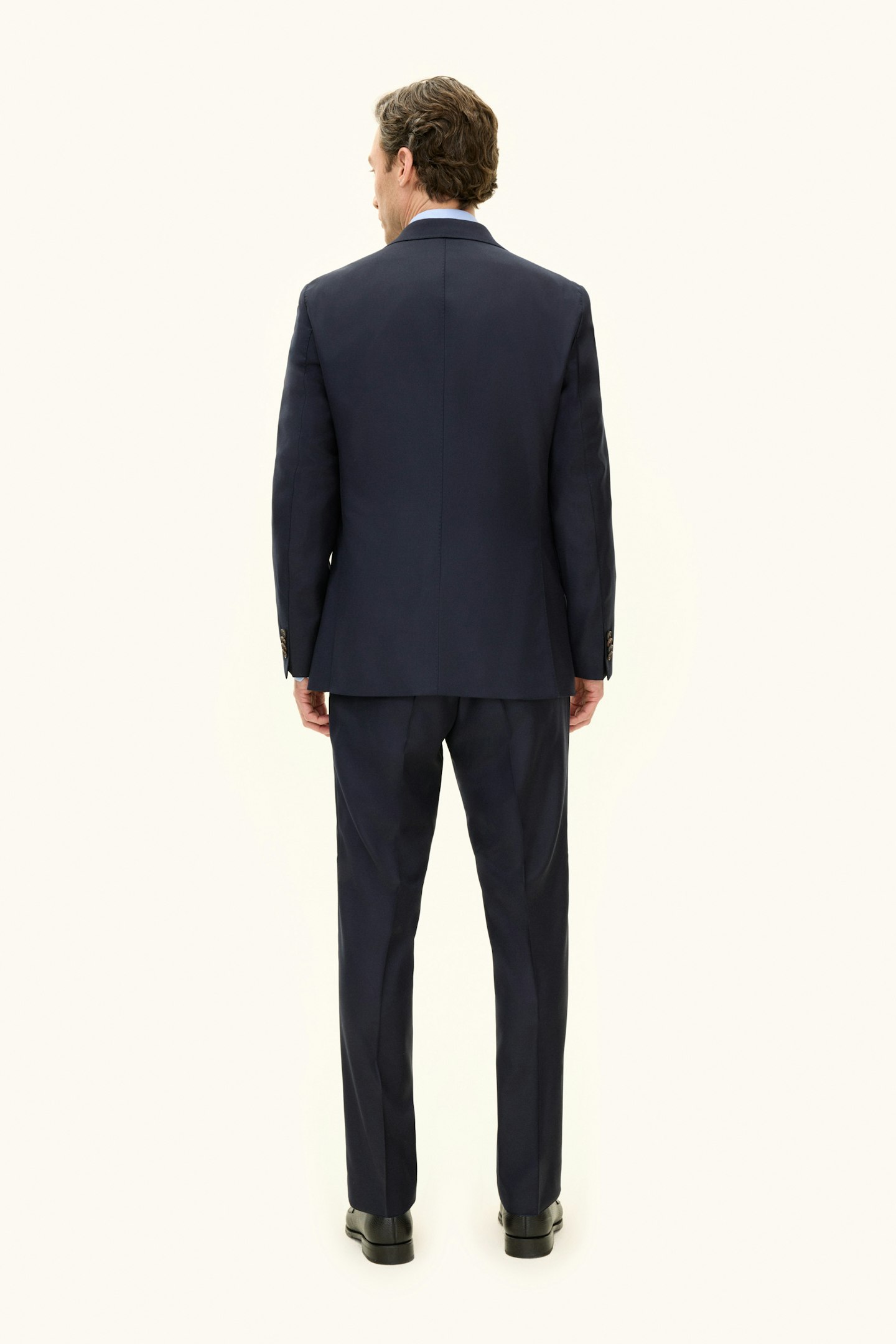 Dette produktet er laget av et ensfarget vevd ullstoff fra Loro Piana.