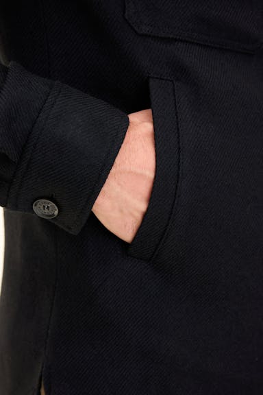 Denne skjortejakken i ullblanding har regular fit og er vevd i twill med en børstet overflate som gir et mykt uttrykk. Et stilfullt lagplagg som kombinerer avslappet komfort med eleganse, og fungerer like godt over skjorte som sammen med strikkede plagg.