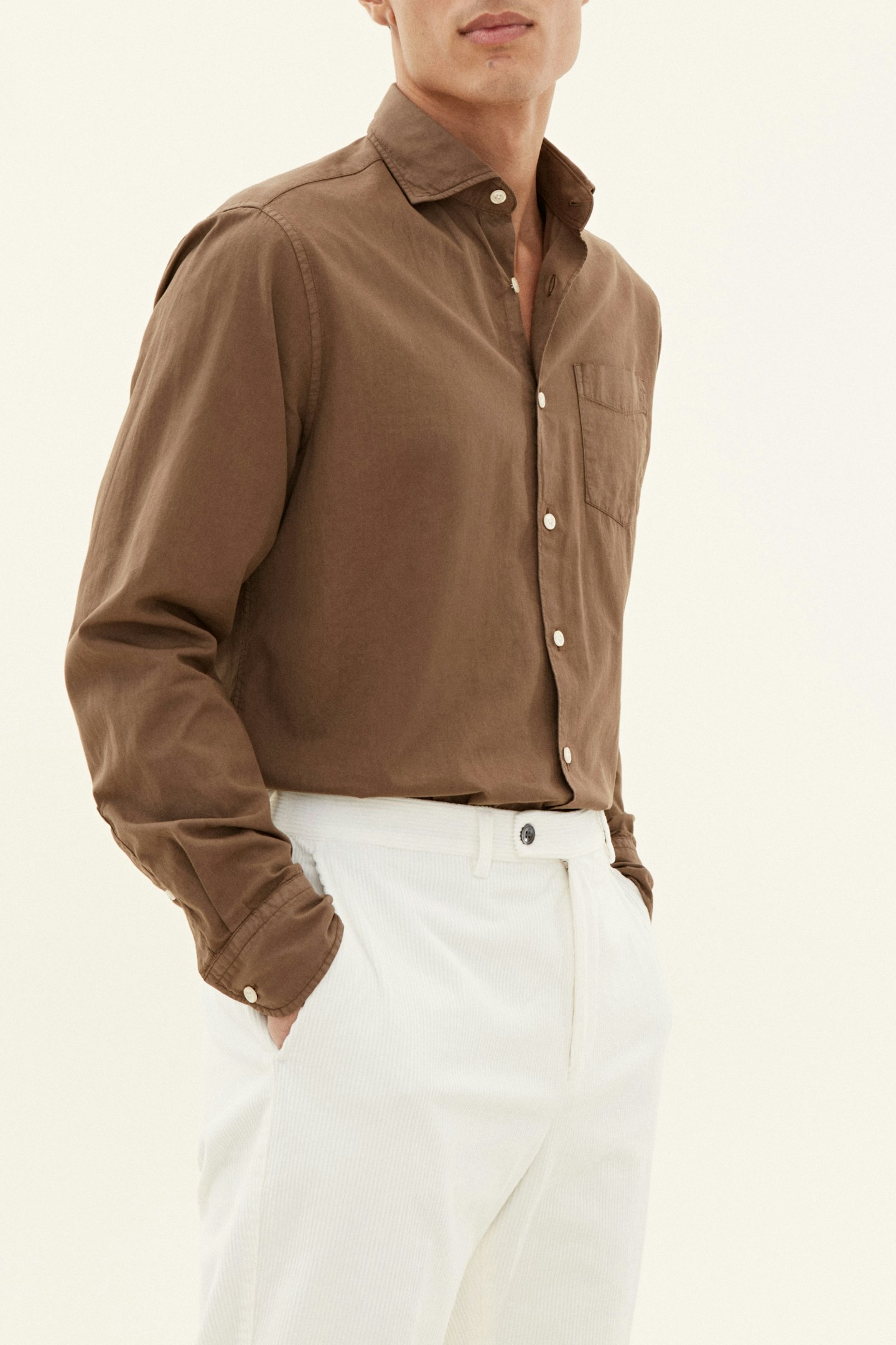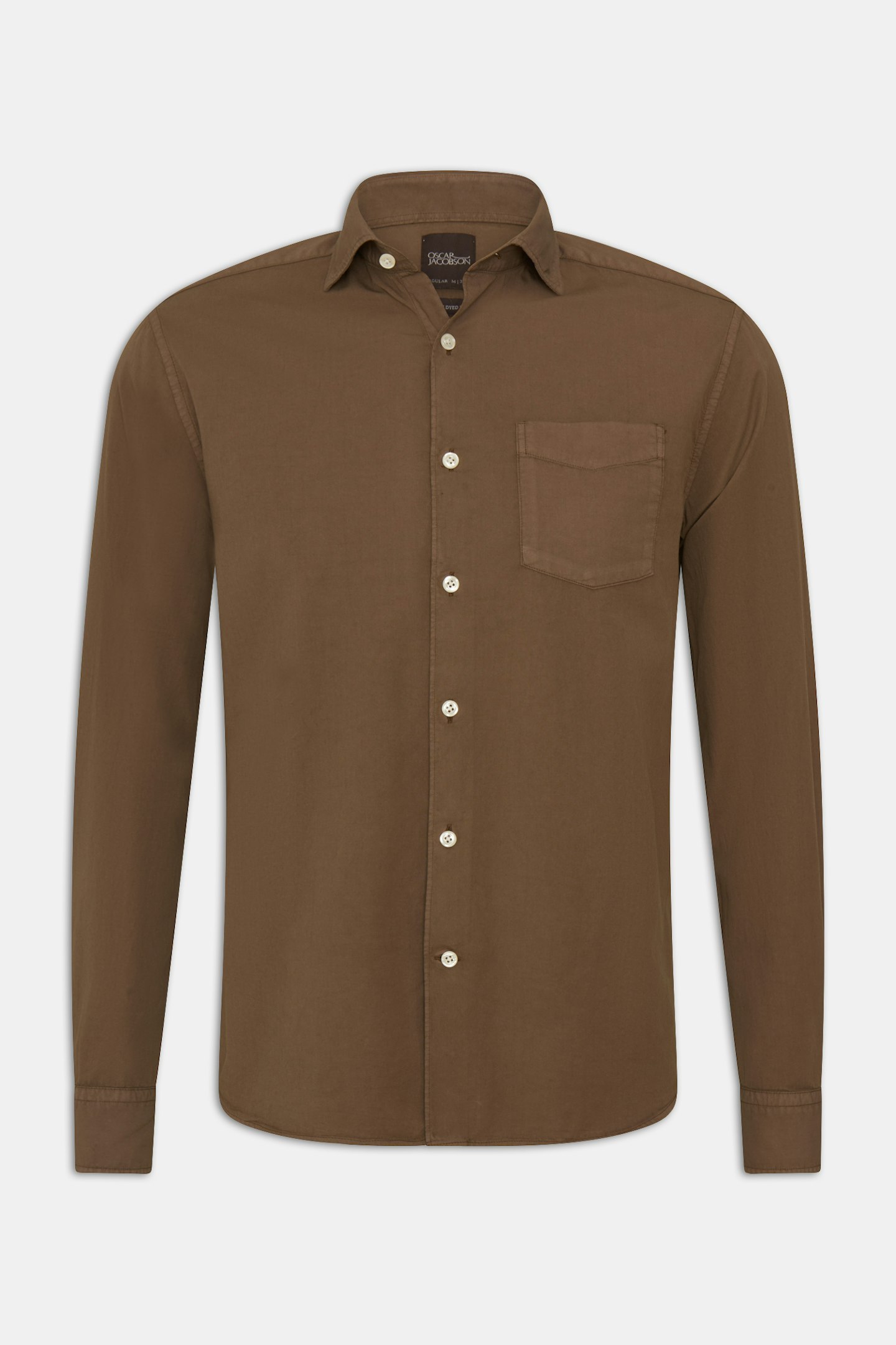 Vår regular fit Twill-skjorte er et allsidig plagg som kan dresses opp eller ned. Laget av 100% bomull, har den en bred spredt krage og en enkelt brystlomme. Twill-veven gir en subtil tekstur til stoffet.