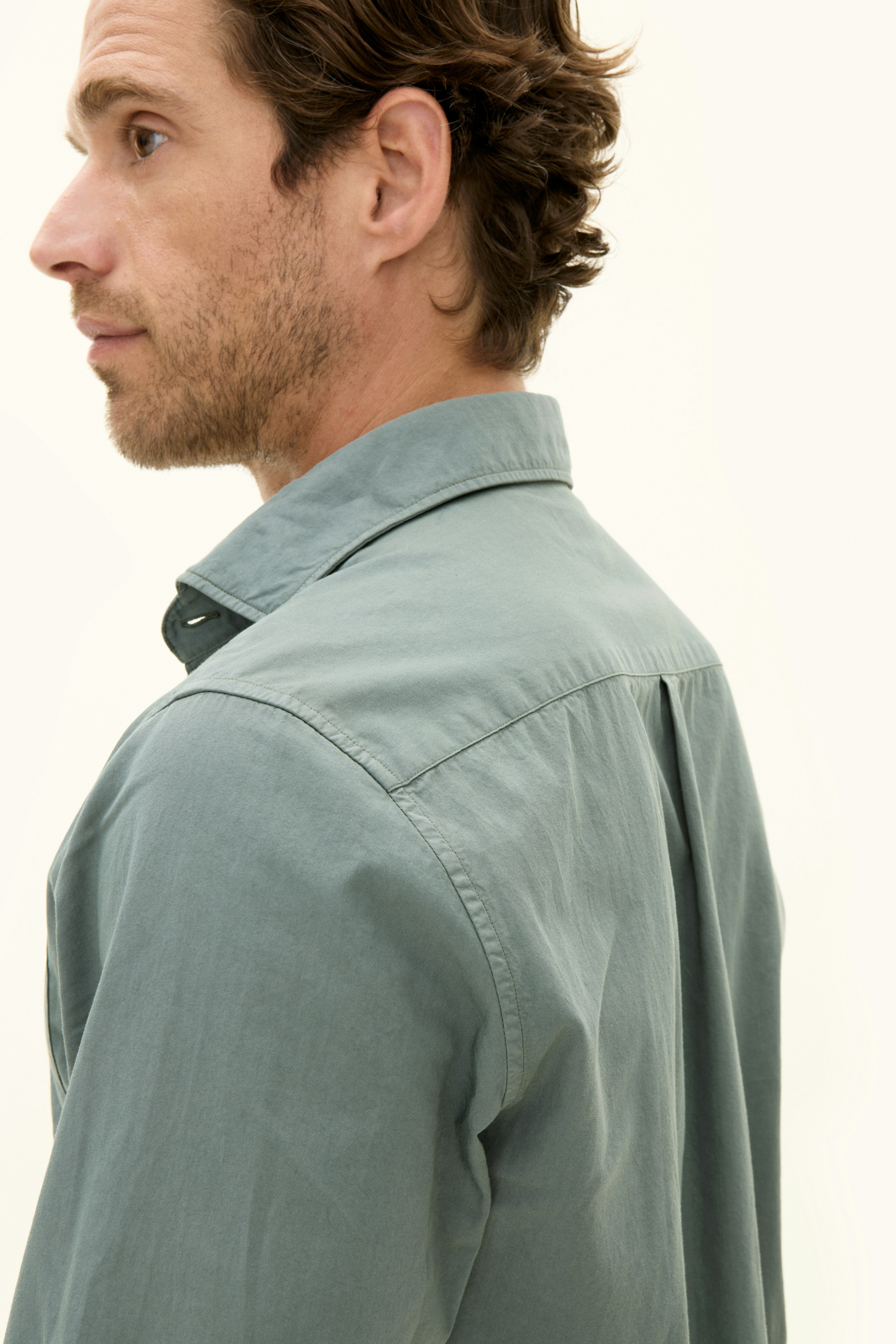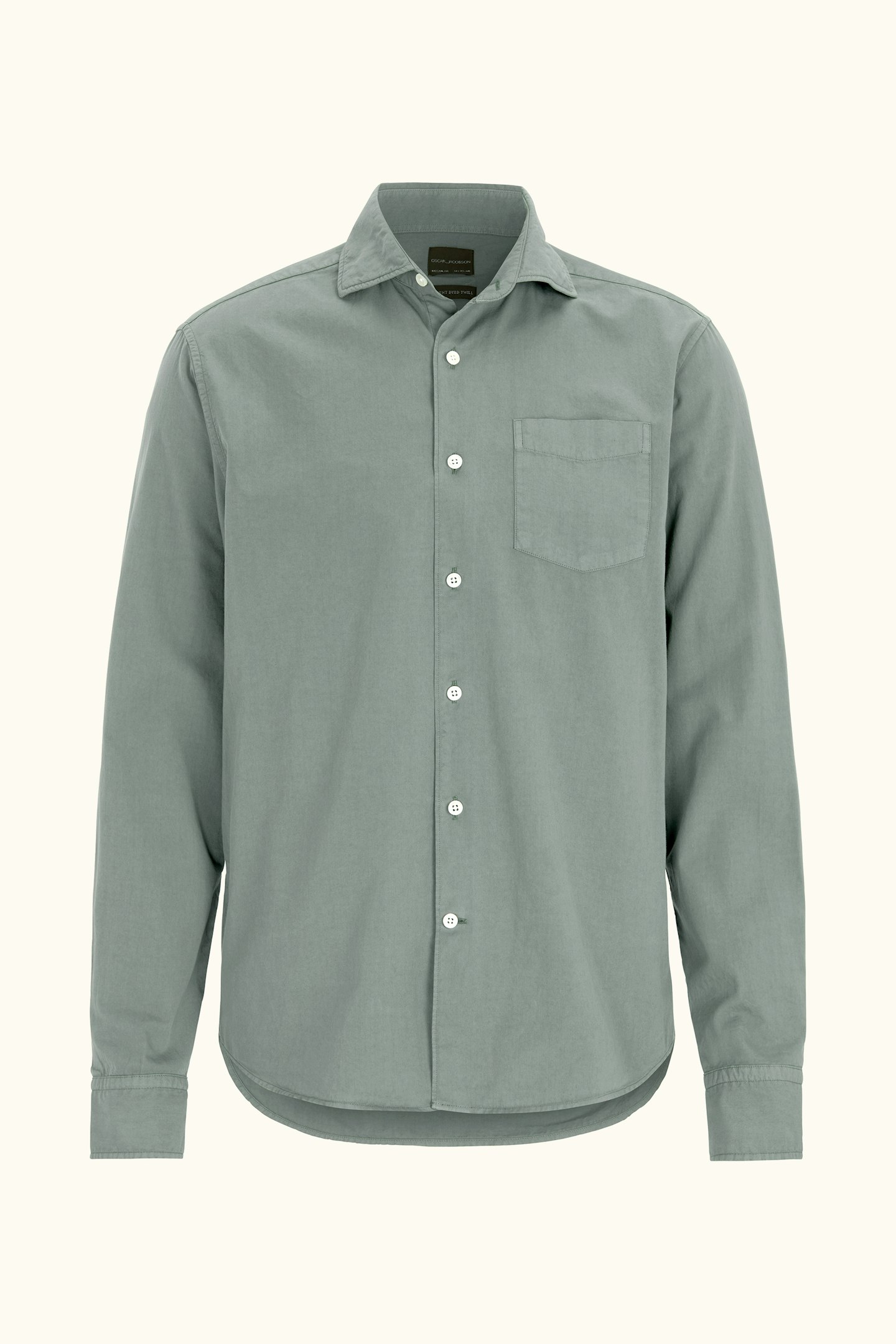 Vår regular fit Twill-skjorte er et allsidig plagg som kan dresses opp eller ned. Laget av 100% bomull, har den en bred spredt krage og en enkelt brystlomme. Twill-veven gir en subtil tekstur til stoffet.