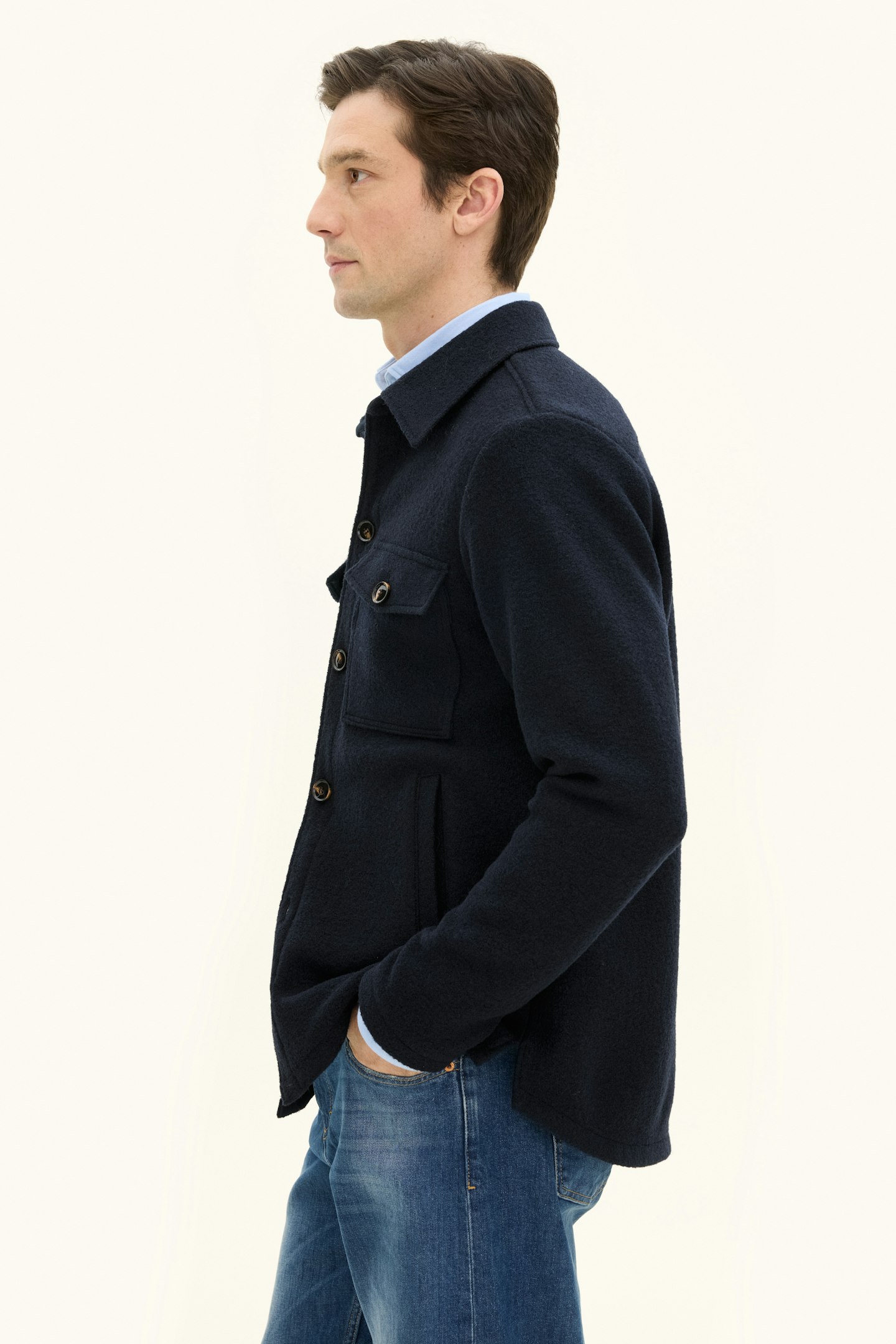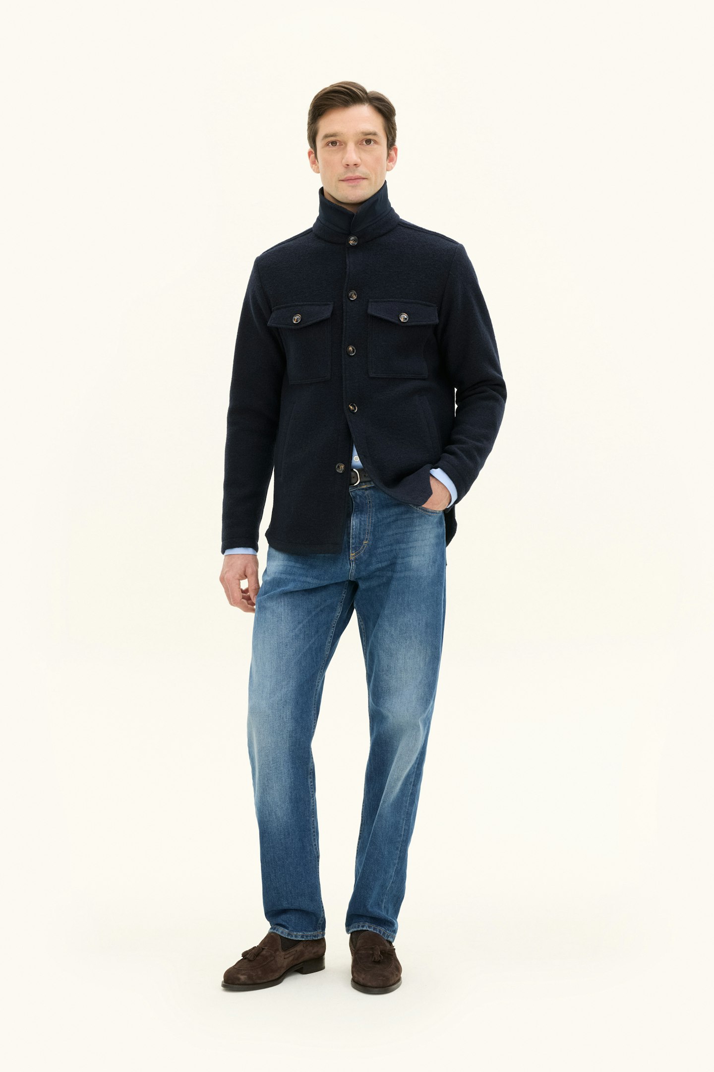En sofistikert overshirt i 100 % ull – designet med et bevisst øye for detaljer og komfort. Regular fit passformen bidrar til et velbalansert uttrykk som passer den moderne brukeren med høye krav til både estetikk og funksjon.