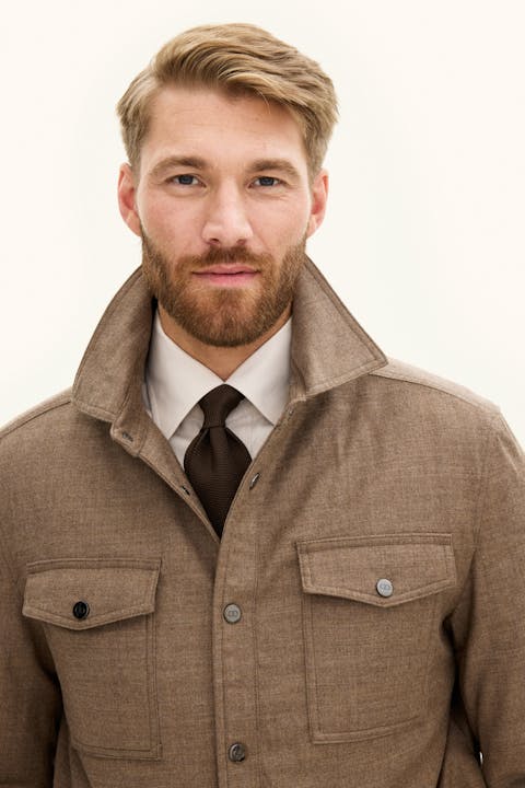 Overshirt laget av en myk ullblanding og har en regular fit passform, og gir en smidig følelse samtidig som den bevarer elegansen. Det diskré uttrykket gjør den til et opplagt valg for både hverdagsbruk og mer pene anledninger.