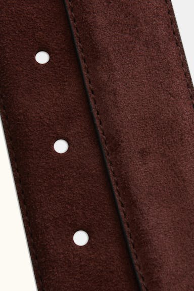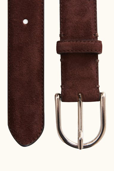 Nubuck-lined belt in an Italian fine grain suede with a silver colored buckle. Made by hand in Spain. The belt is 30mm wide to work both with a formal suit or a pair of casual jeans.