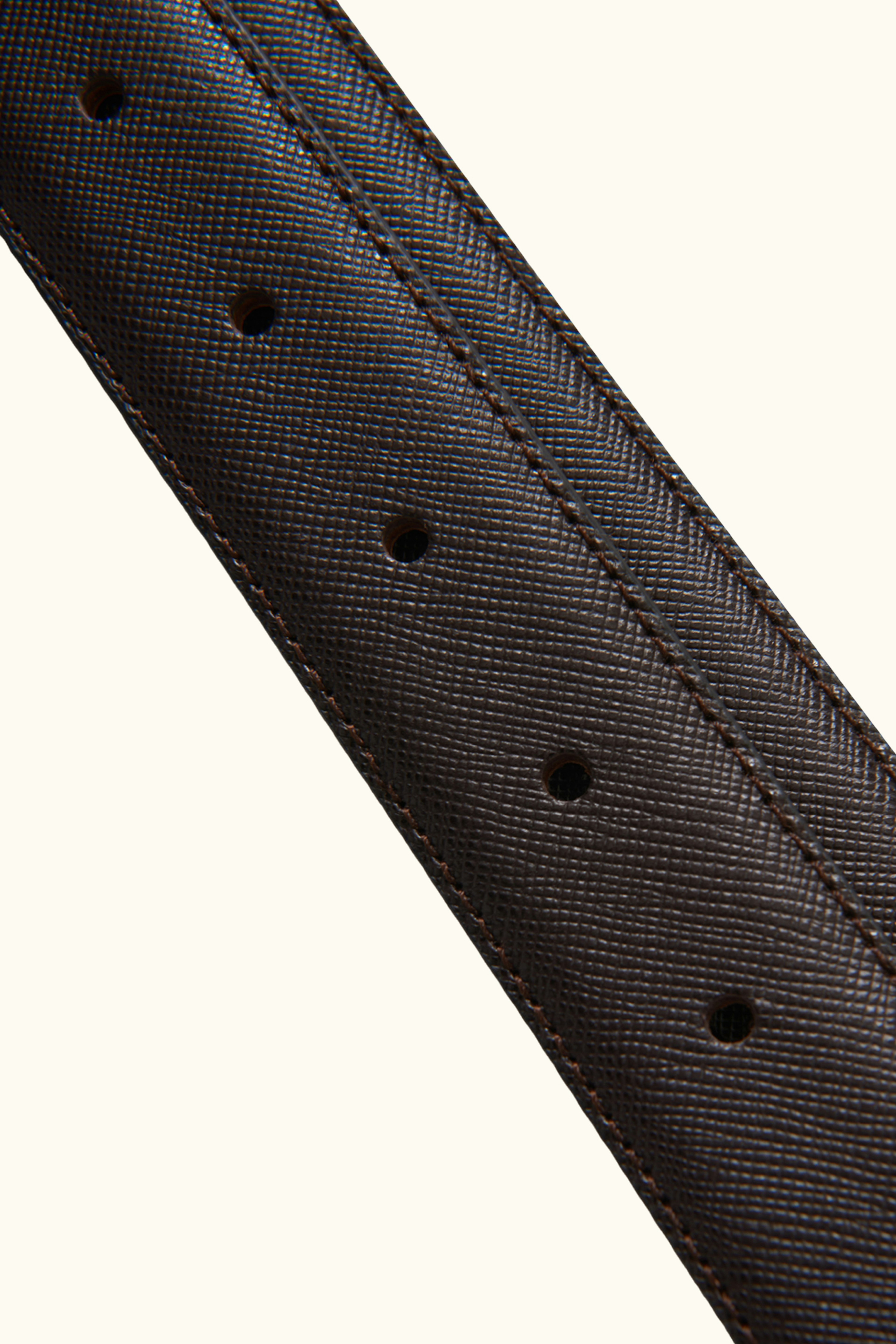 Nubuckfôret belte i spansk Saffiano-skinn, med en sølvfarget spenne. Håndlaget i Spania. Beltet er 30 mm bredt, og fungerer både til en formell dress og et par avslappede jeans.