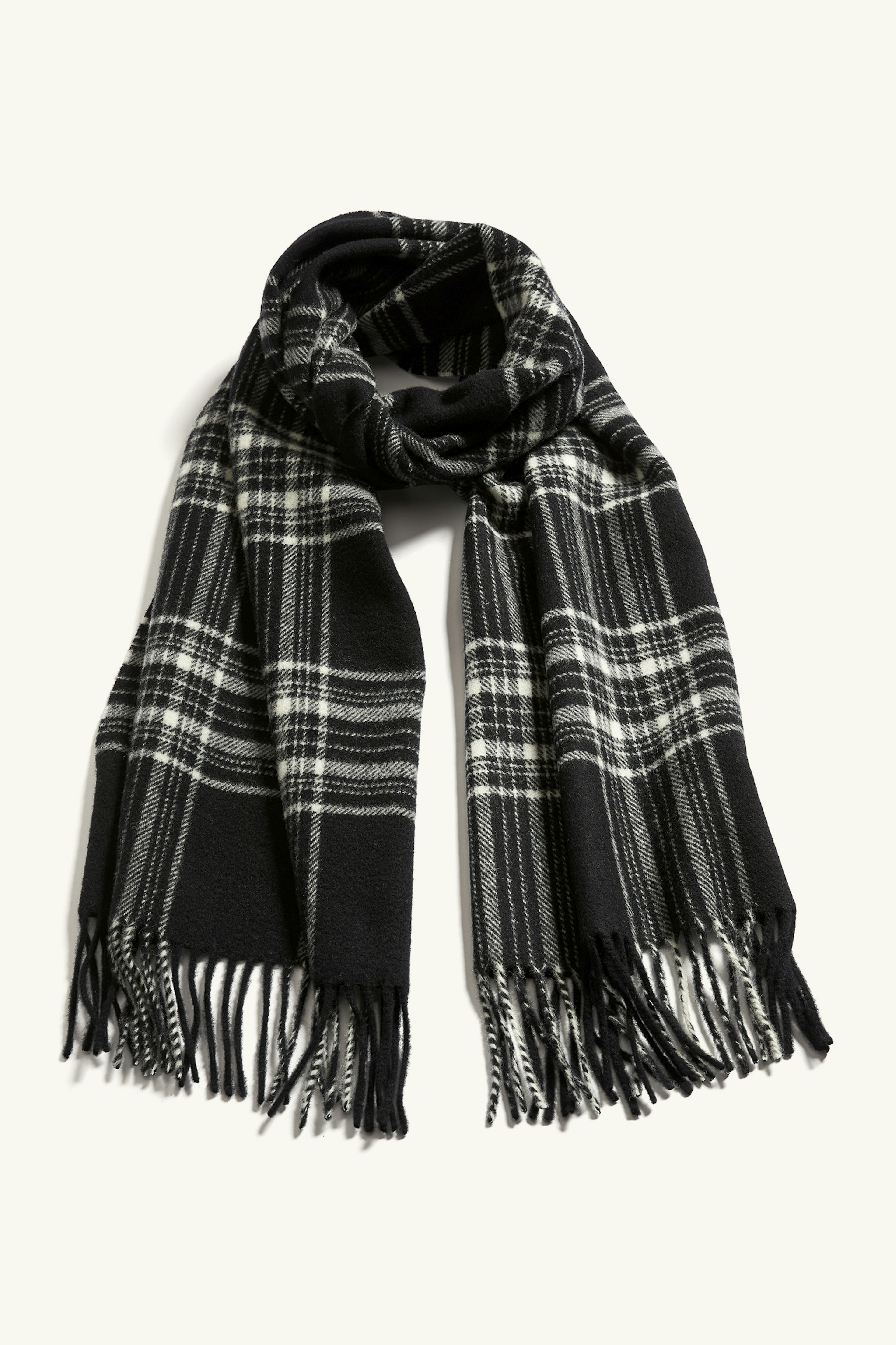 Dette skjerfet er laget av 100% virgin ull. Stylet med et tidløst stripet mønster, laget med vevd konstruksjon. Designet for å løfte hverdagslooken din med letthet.