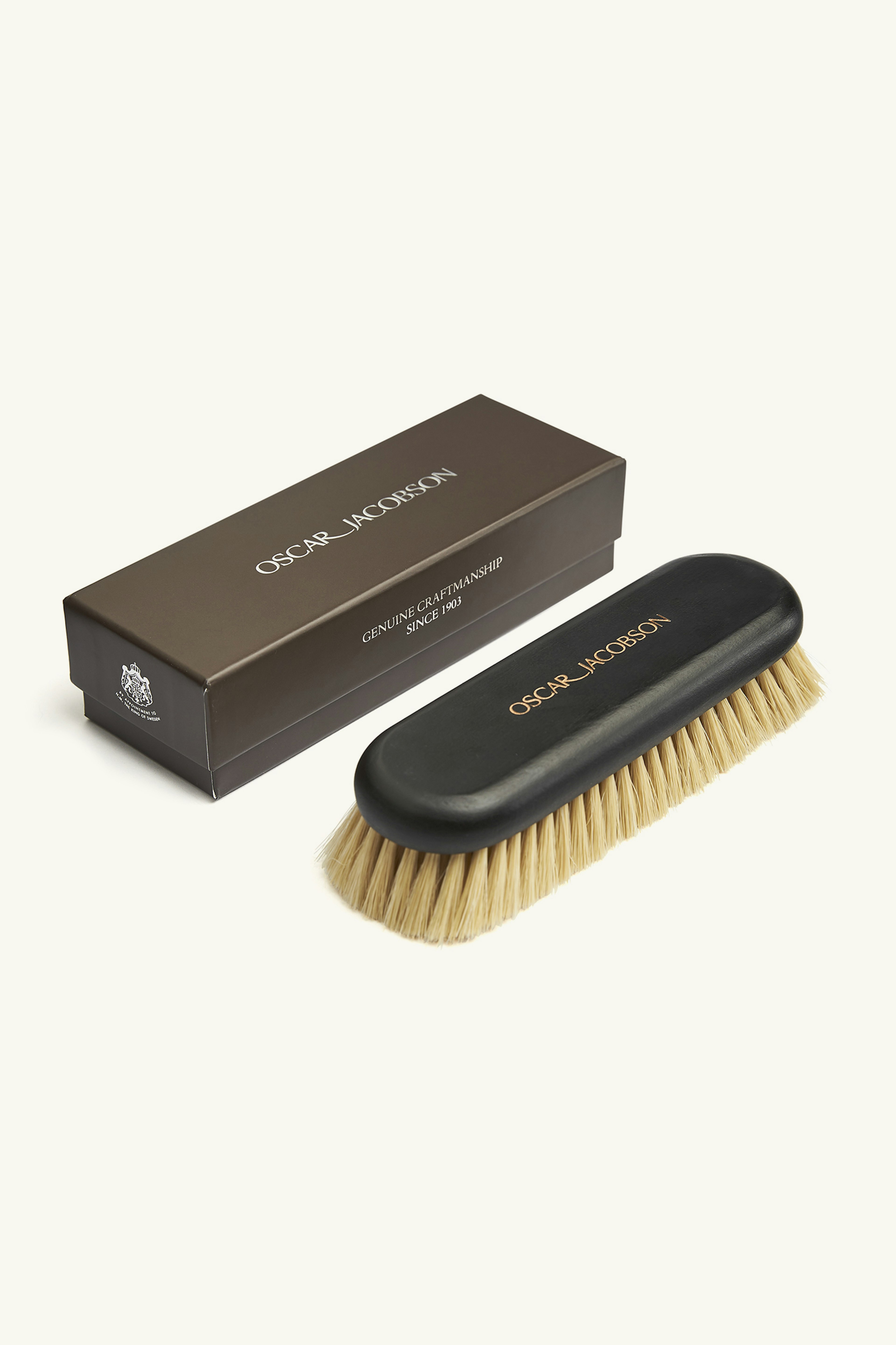 Skobørste med hestehår og trehåndtak for å pusse opp og ta vare på dine lærprodukter.