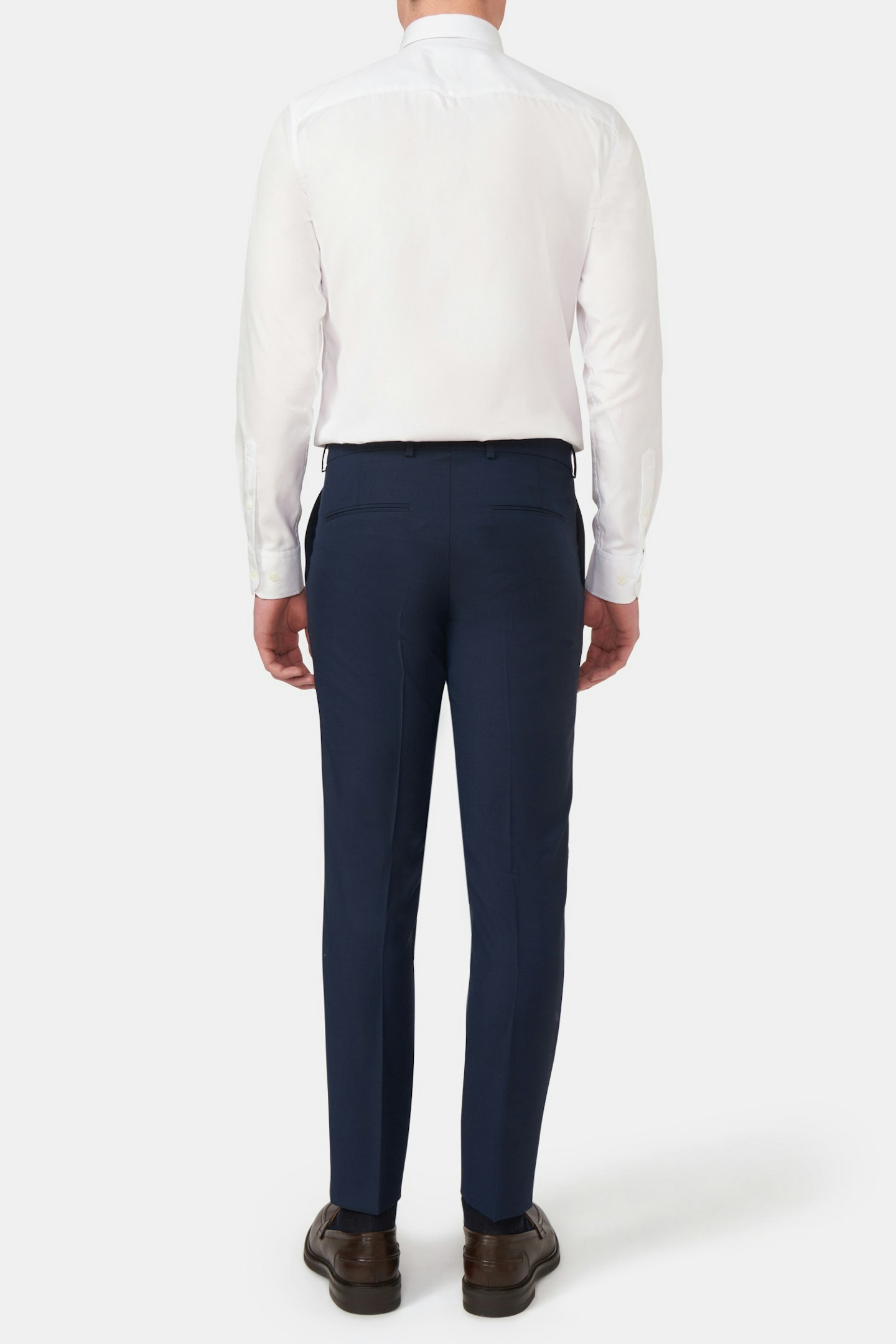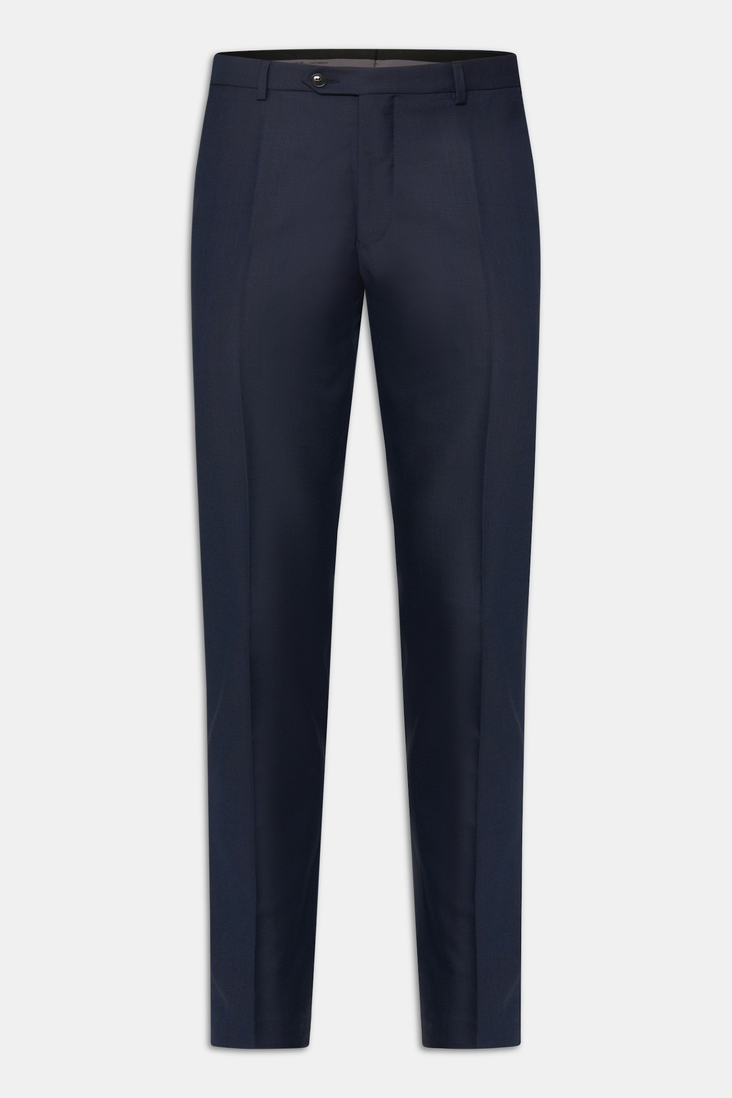 Disse buksene er laget av mikrostrukturert ull fra veveriet Angelico. Et stoff som passer like godt i en formell dress som i en elegant bukse. Den smale passformen og den moderne, litt kortere benlengden skaper en elegant look.