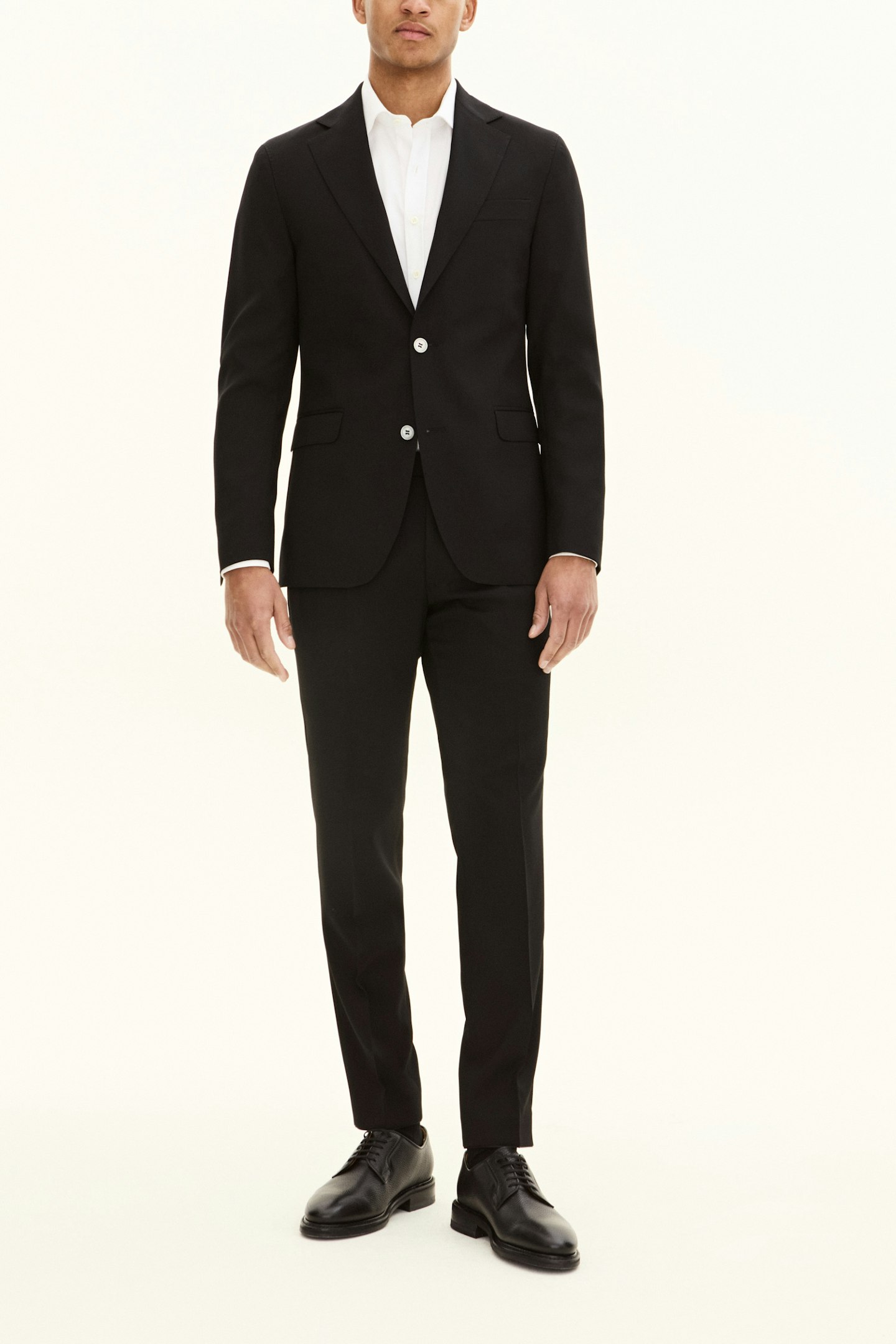 Helfôret blazer som, takket være sin fantastiske ullstruktur med naturlig stretch, faller inn i kategorien "travel blazer". Et slitesterkt og ikke minst rynkebestandig materiale som egner seg godt til daglig bruk. Modellen har en smal passform som gir en flott skreddersydd følelse uten å føles stram. Skulderen er lett strukturert og lommene har klassiske lommeklaffer.