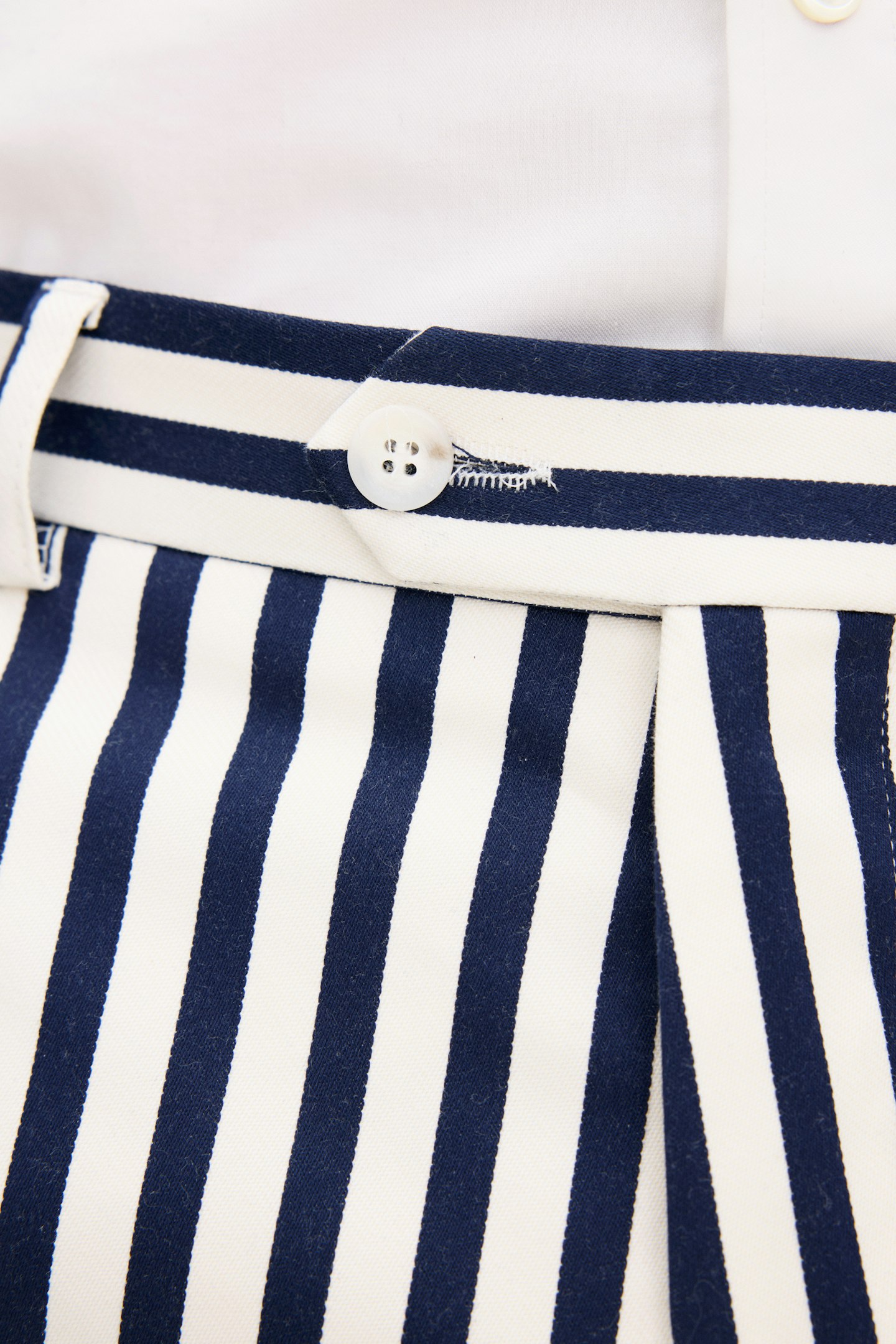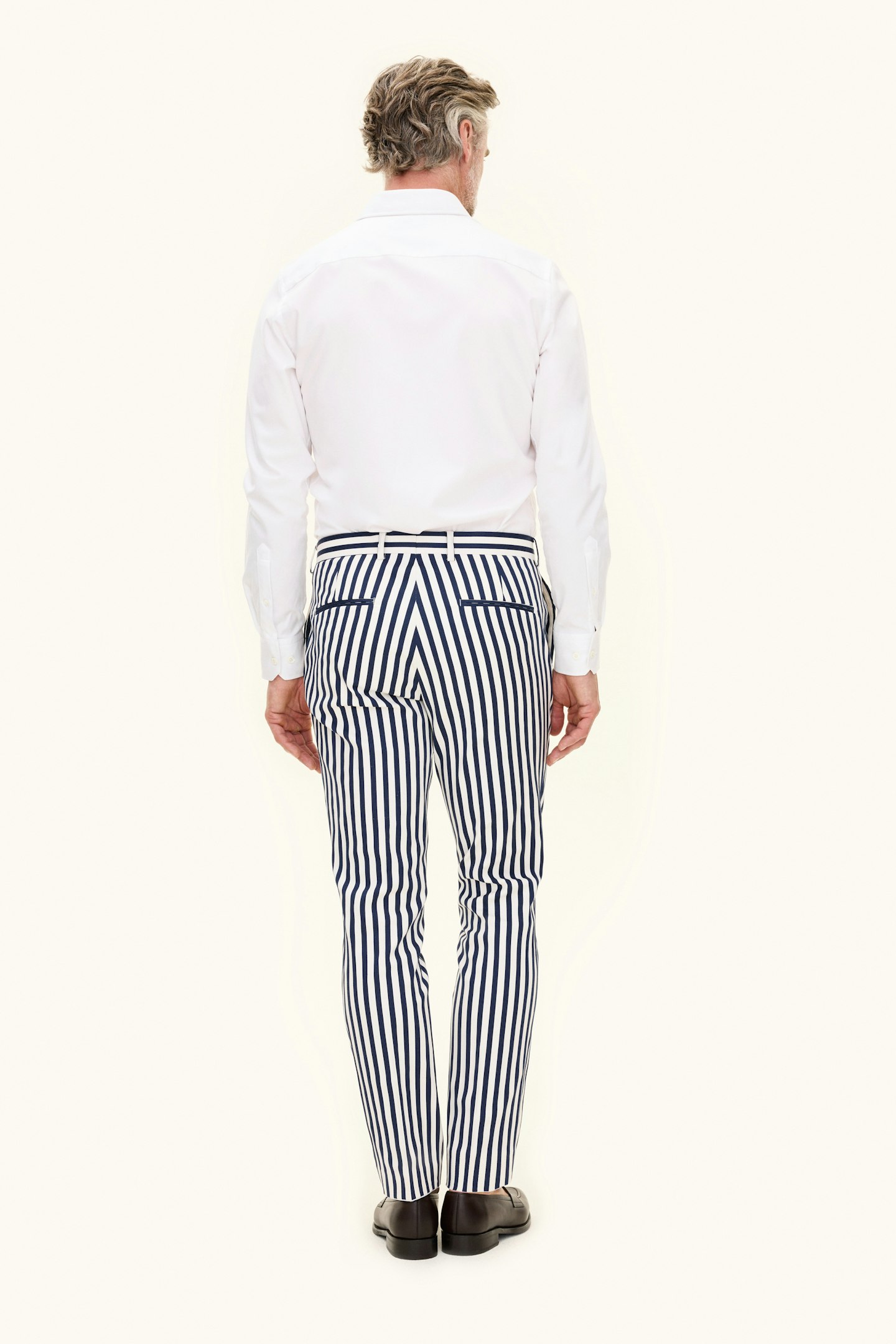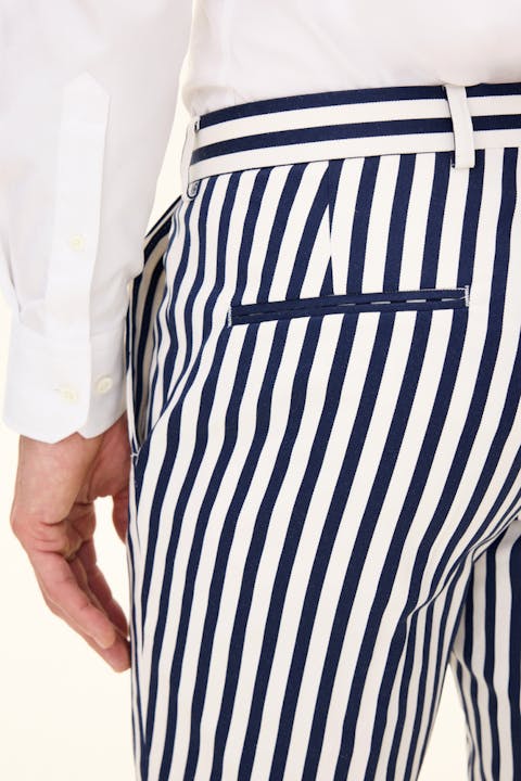 Laget av en myk bomullsblanding, har disse buksene en slim fit. De er designet med et tidløst stripemønster og laget med vevd konstruksjon. Et raffinert valg for enkel eleganse.
