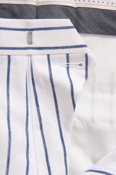 Bukse med en smal passform og normalhøyt liv, smygstoler og avsmalede ben. Laget av et lin- og bomullsstoff fra Lanificio di Pray.