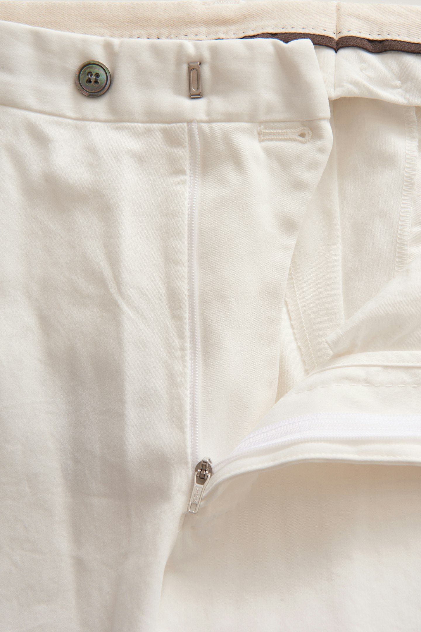 Bukse med en smal passform og normalhøy midje, beltehemper og avsmalede ben. Laget av et tynnere mykt bomullsstoff.
