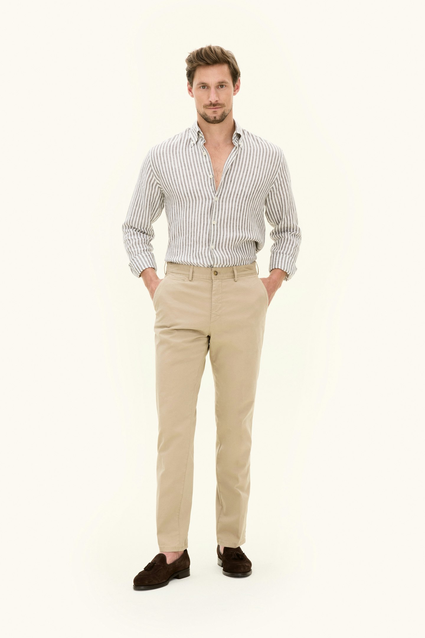 Laget av en myk bomullsblanding, har disse buksene en regular fit. De er designet med et tidløst ensfarget mønster og laget med vevd konstruksjon, med en raffinert twill-stretchtekstur. En moderne klassiker som balanserer stil og komfort.