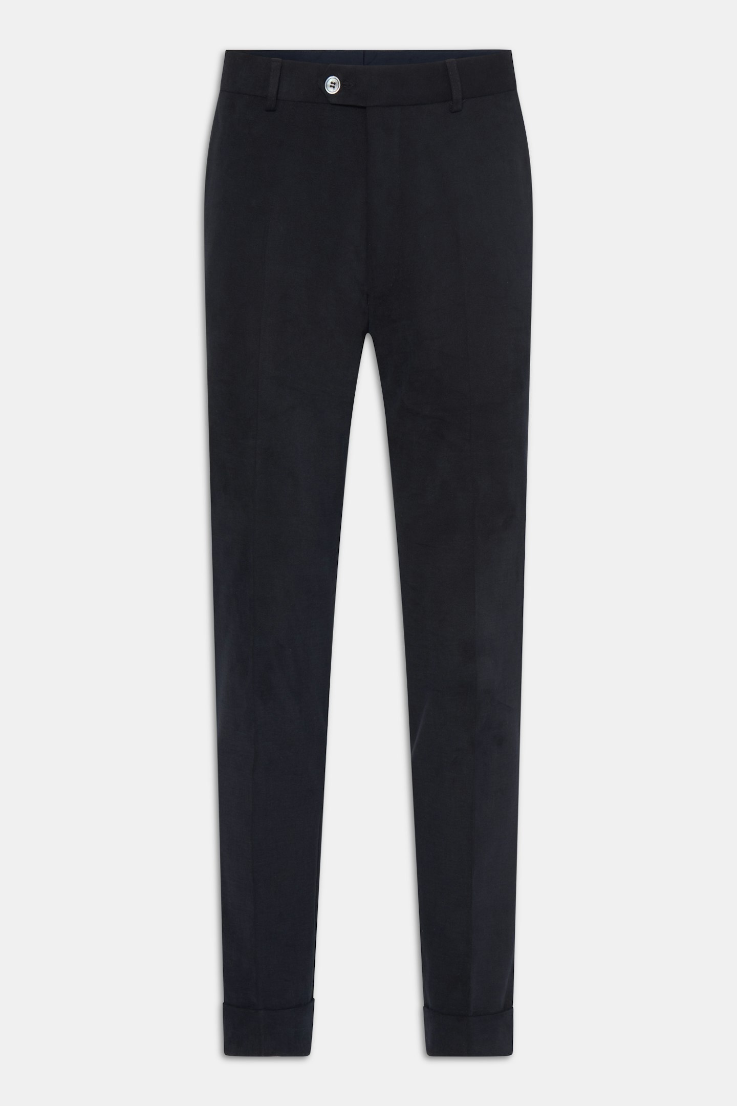 Dressbukser med smal passform, oppbrett og normal høy liv. Semi-formelt materiale i bomullstwill.