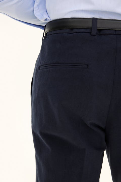 Dressbukser med smal passform, oppbrett og normal høy liv. Semi-formelt materiale i bomullstwill.