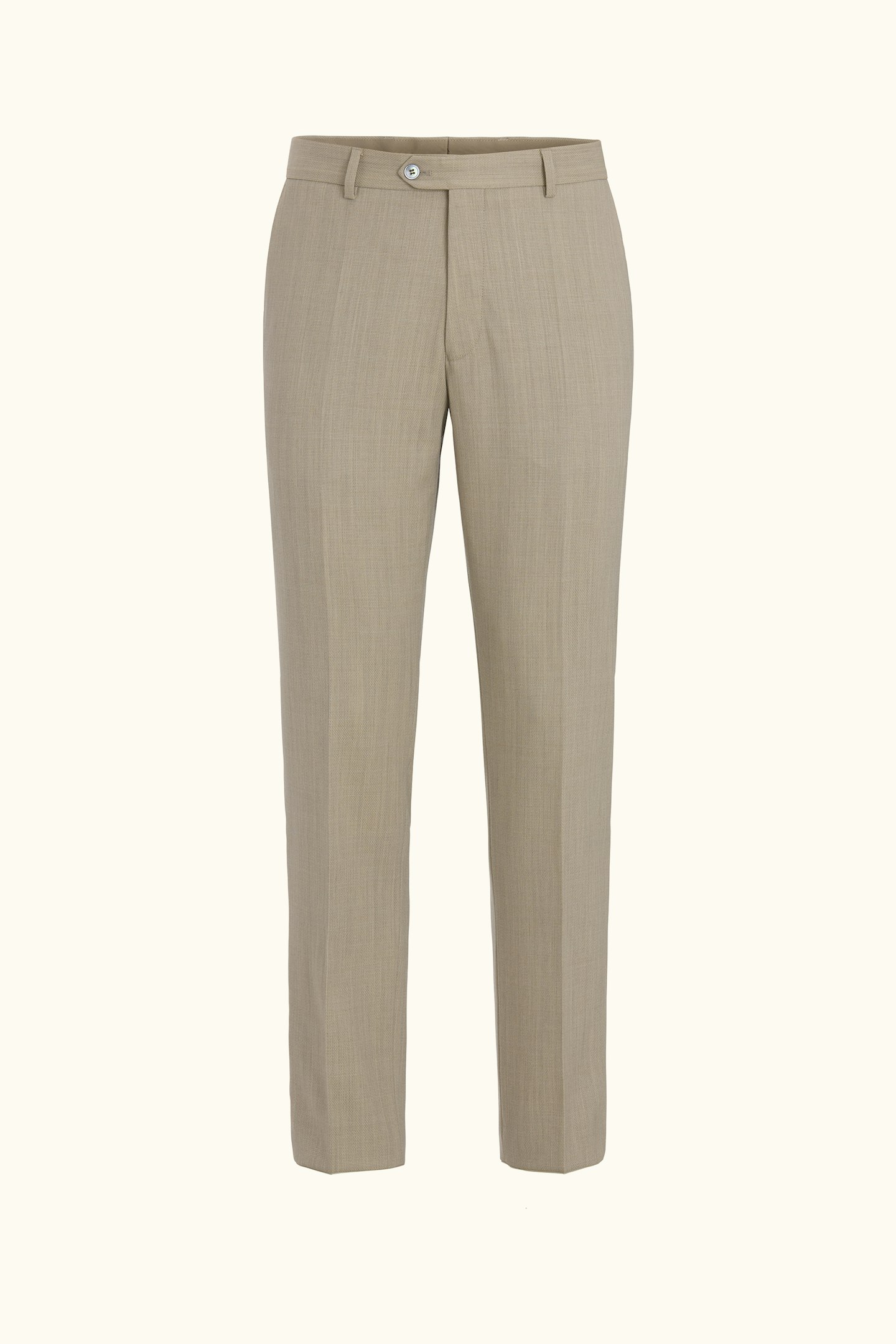 Ullbukse med elegant mikrostruktur. Denne modellen har en smal passform, normal midje og benlengde der buksene ender rett over skoen og har et naturlig fall.