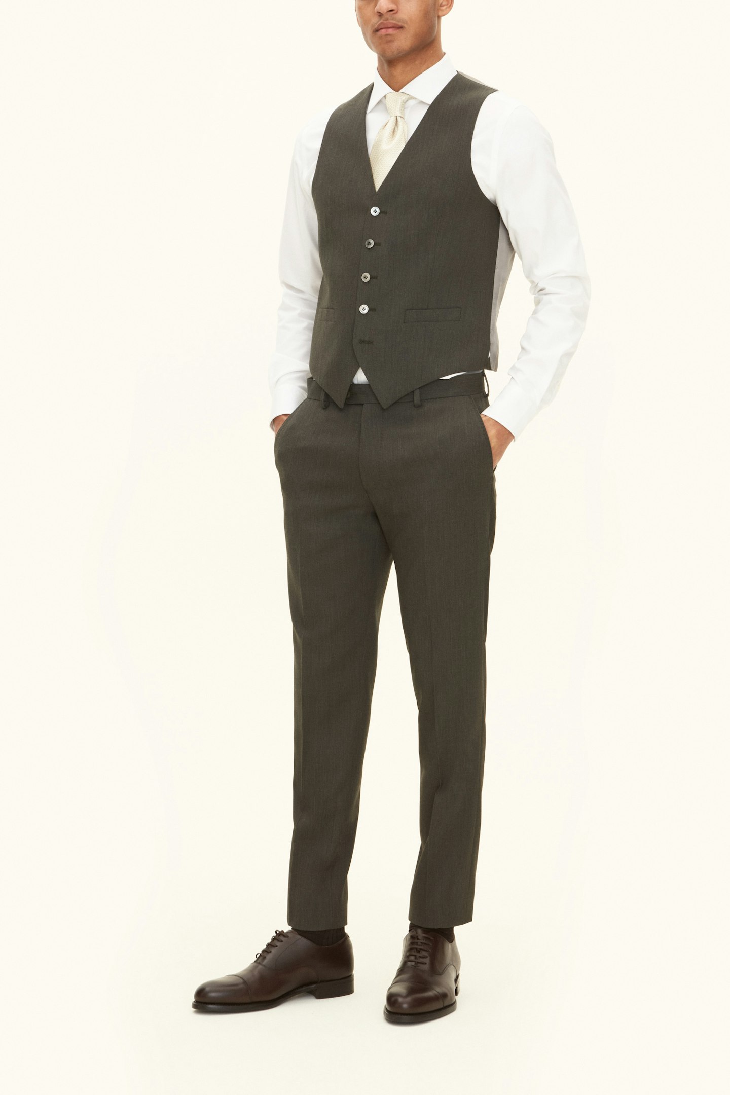 Ullbukse med elegant mikrostruktur. Denne modellen har en smal passform, normal midje og benlengde der buksene ender rett over skoen og har et naturlig fall.