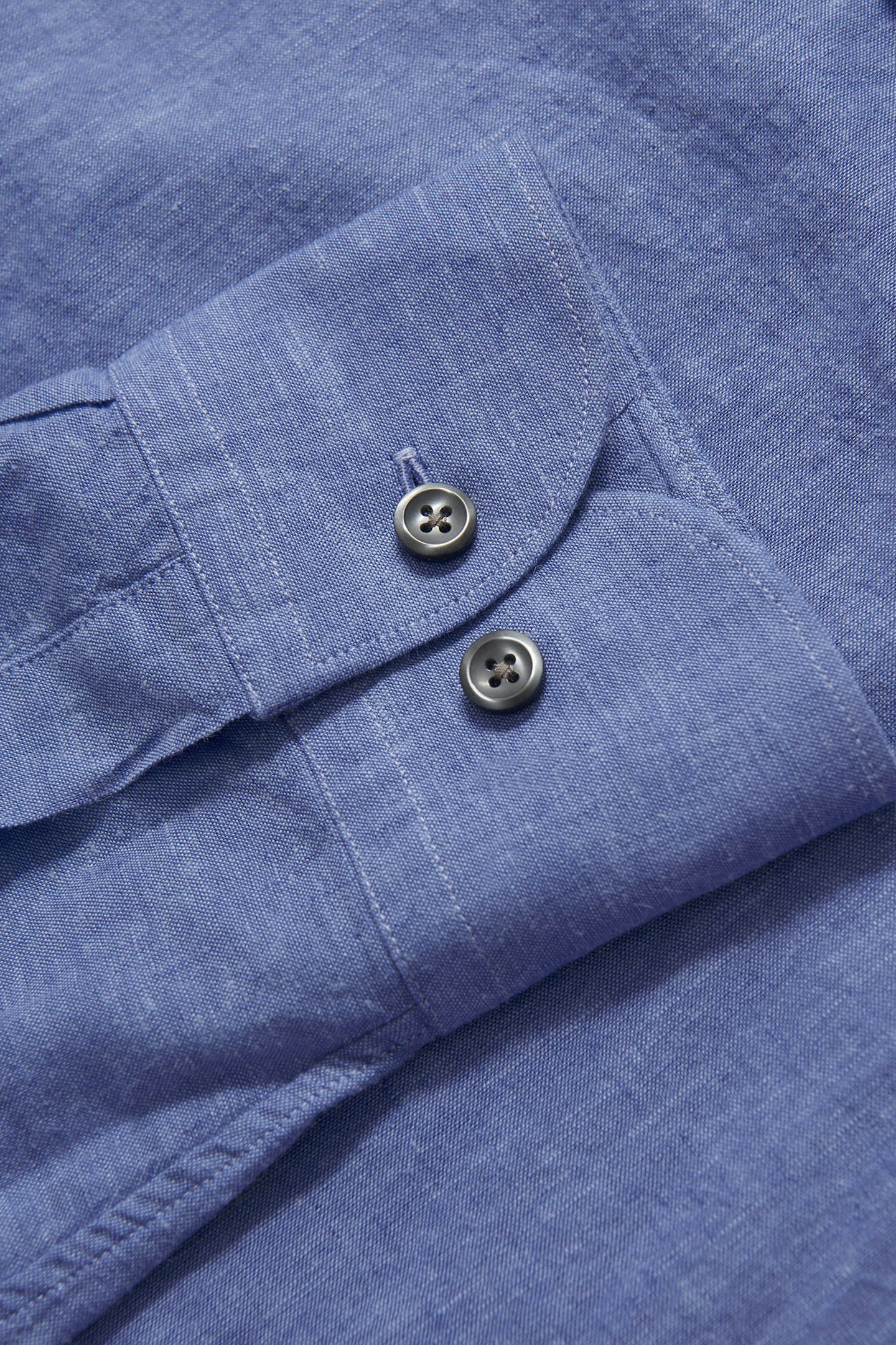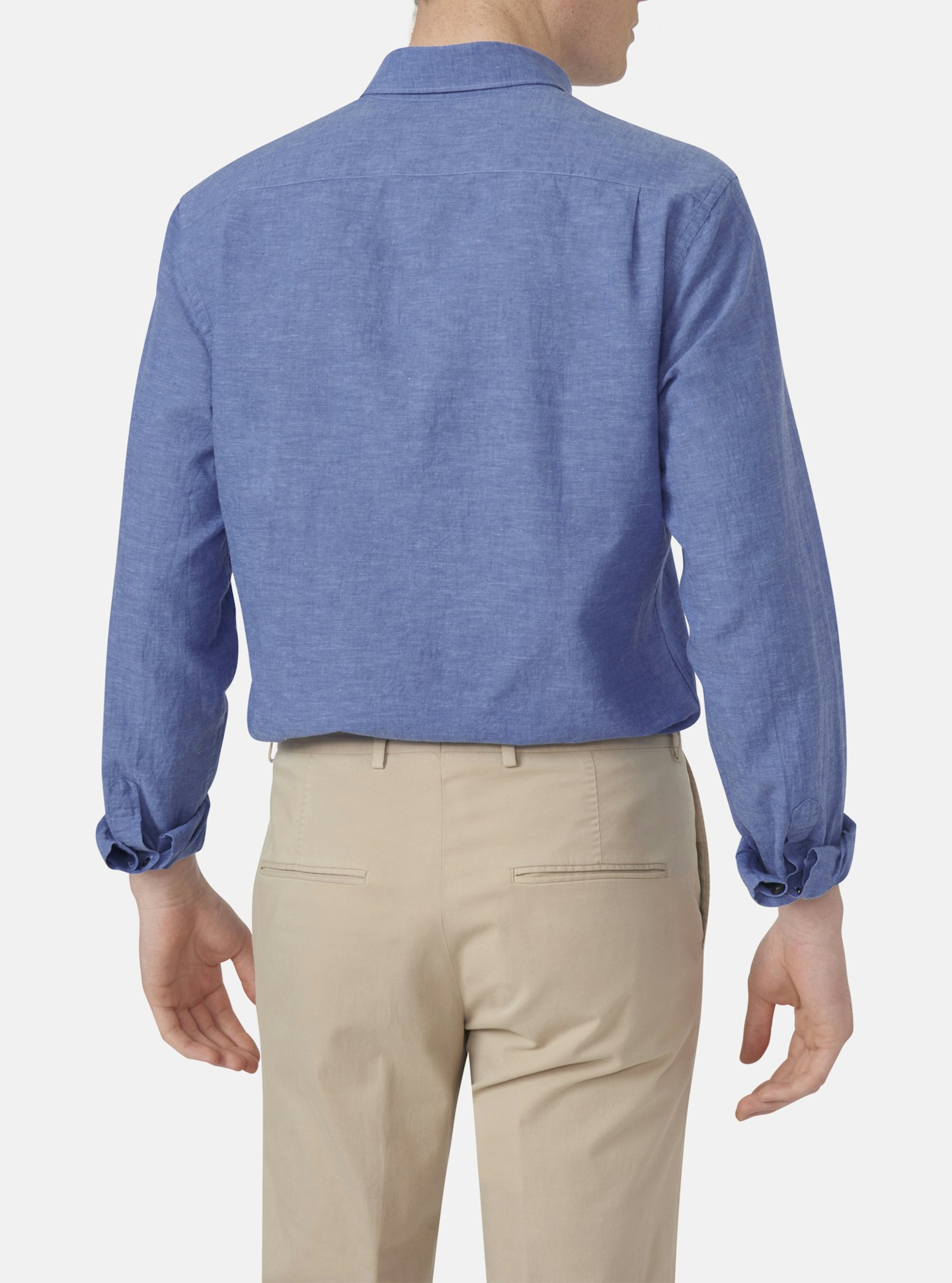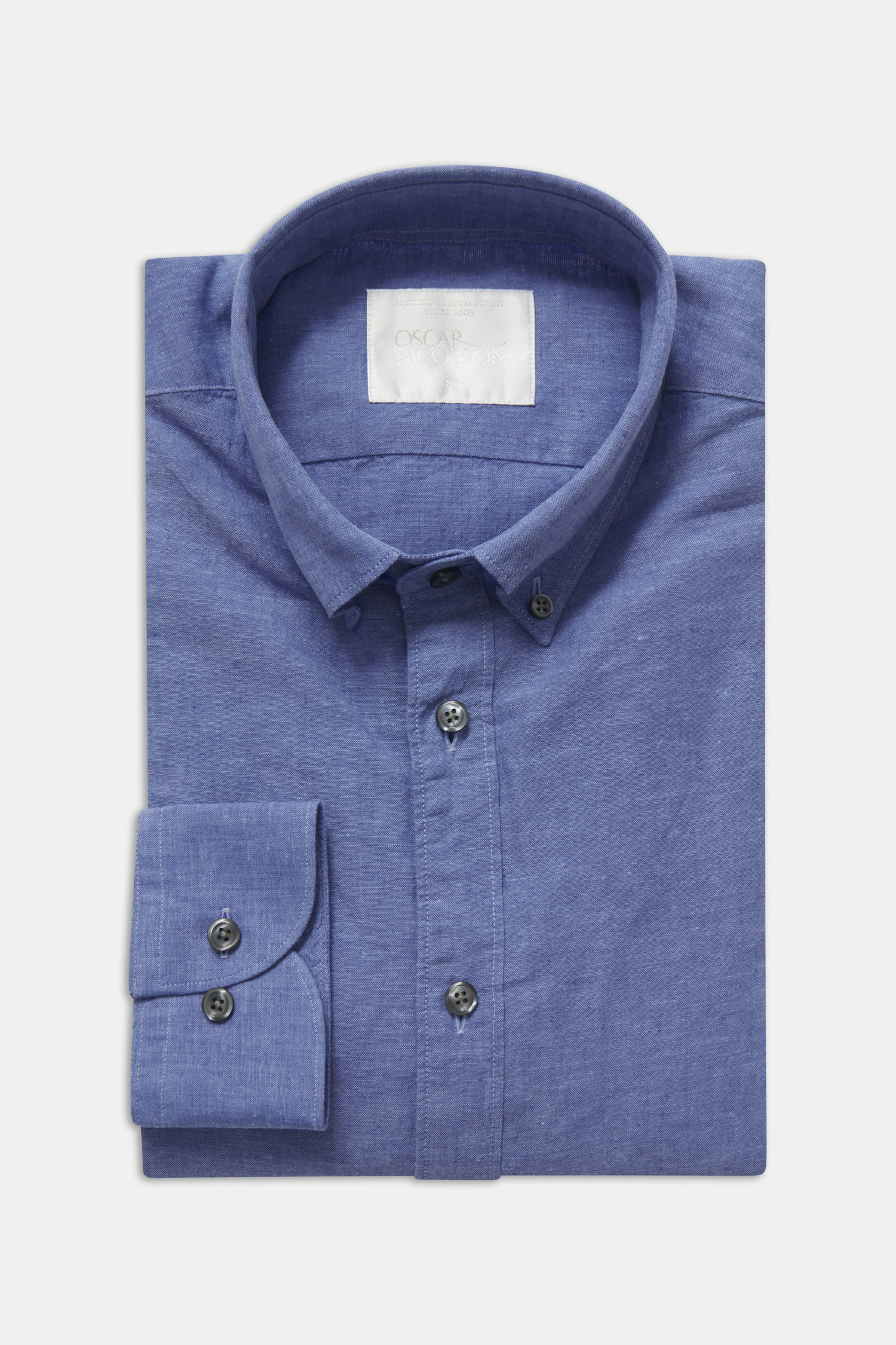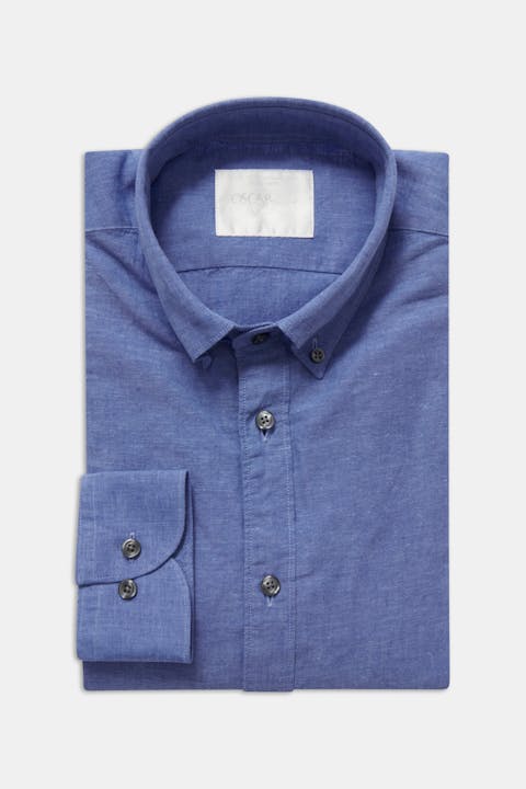 Skjorte med en enkel mansjett og button down-krage, med dobbel søm i ryggen for en smalere passform. Stoffet er laget av en blanding av bomull og lin i et vasket utseende.