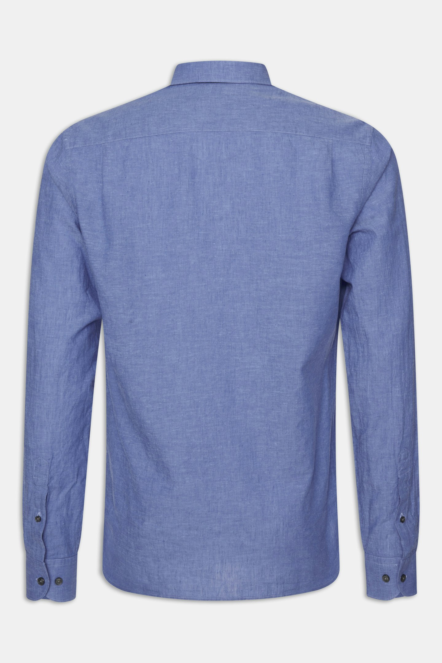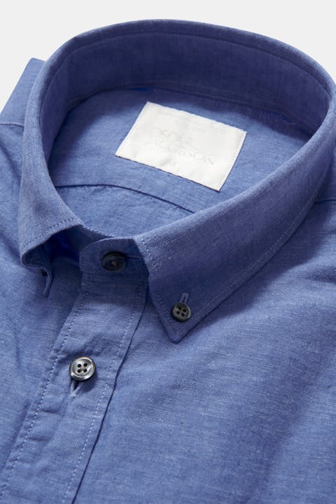 Skjorte med en enkel mansjett og button down-krage, med dobbel søm i ryggen for en smalere passform. Stoffet er laget av en blanding av bomull og lin i et vasket utseende.